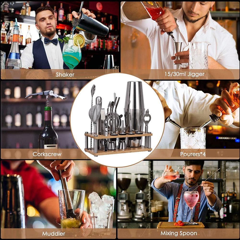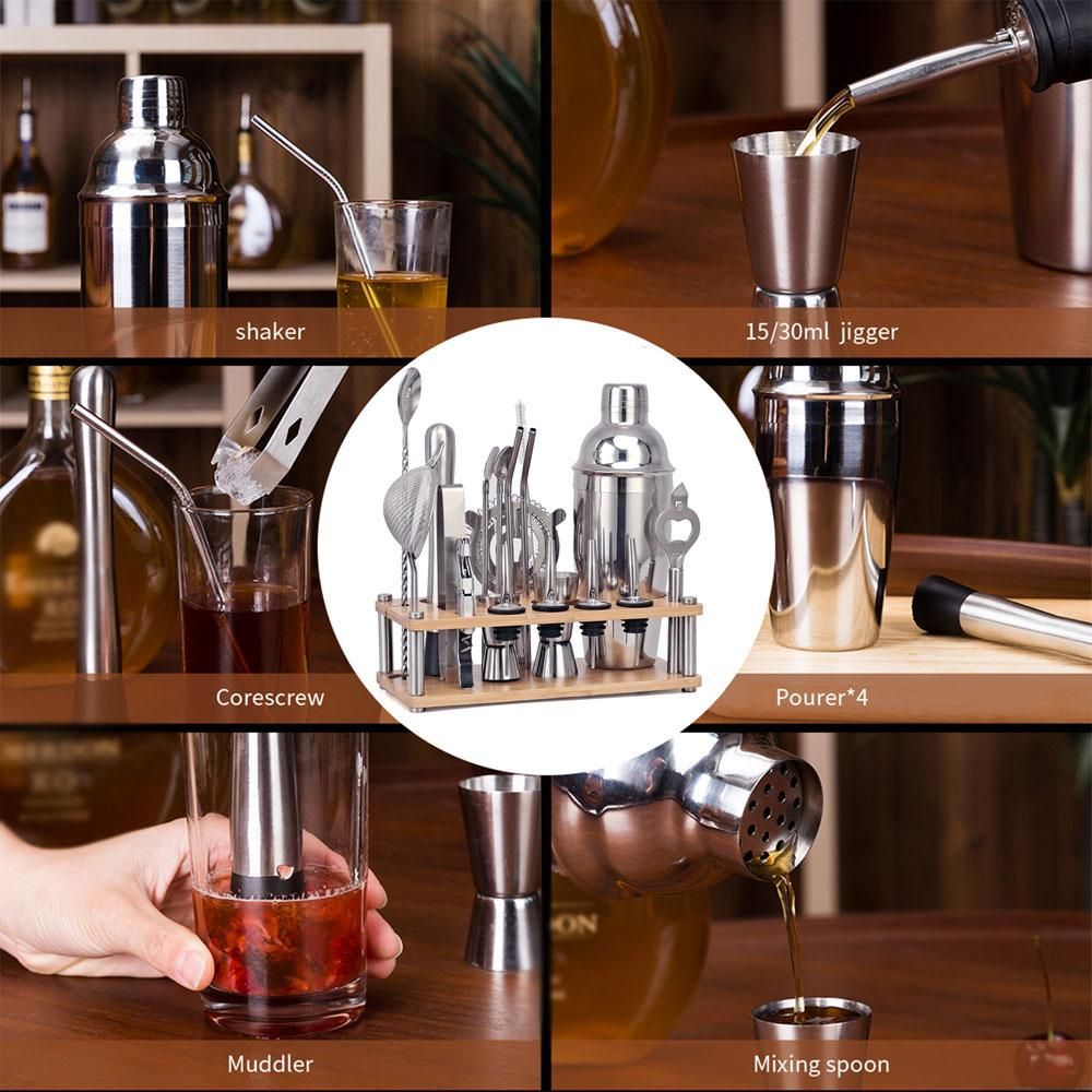 Buy 20pcs Bar Cocktail Set Shaker Drink Making Kit Stainless Steel Mixer Making Gift with Holder Base in Nigeria