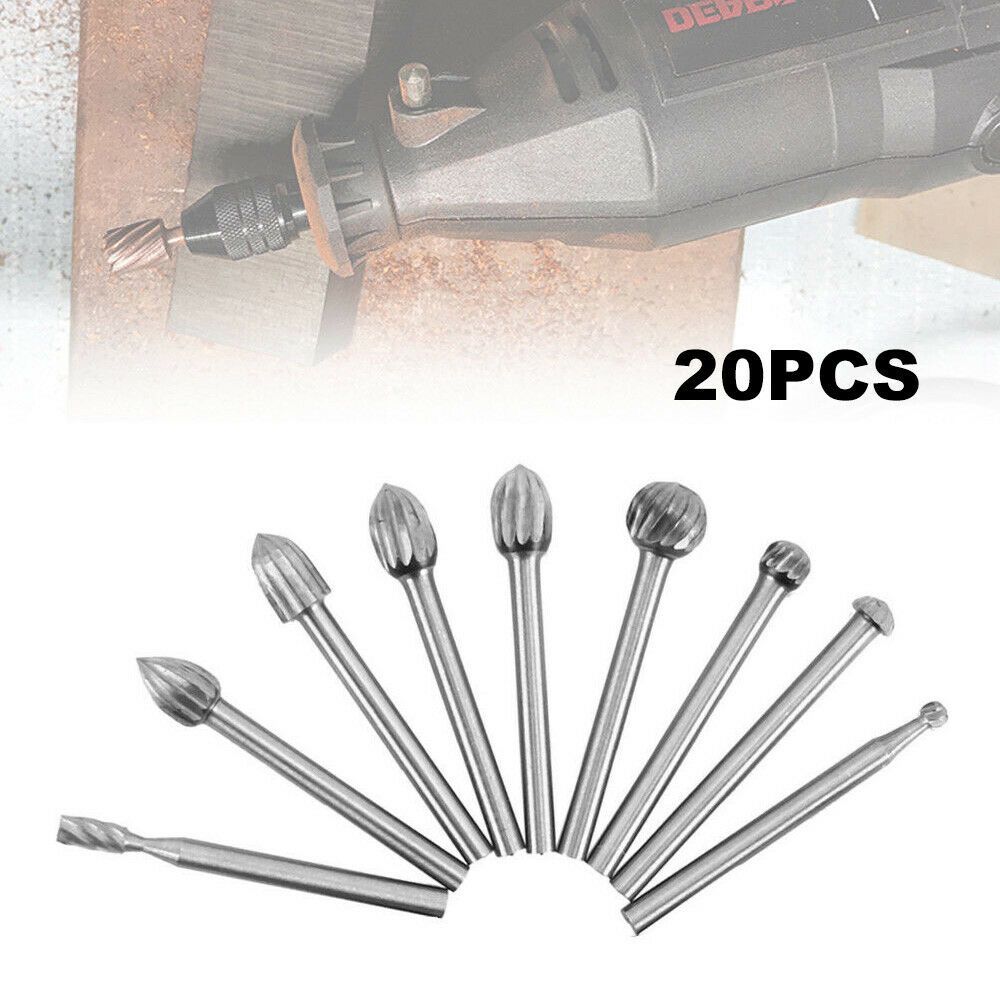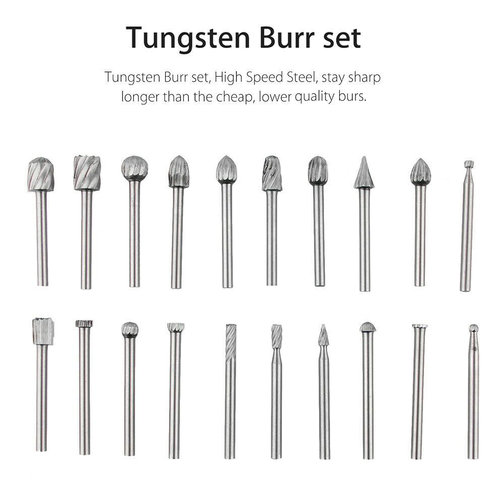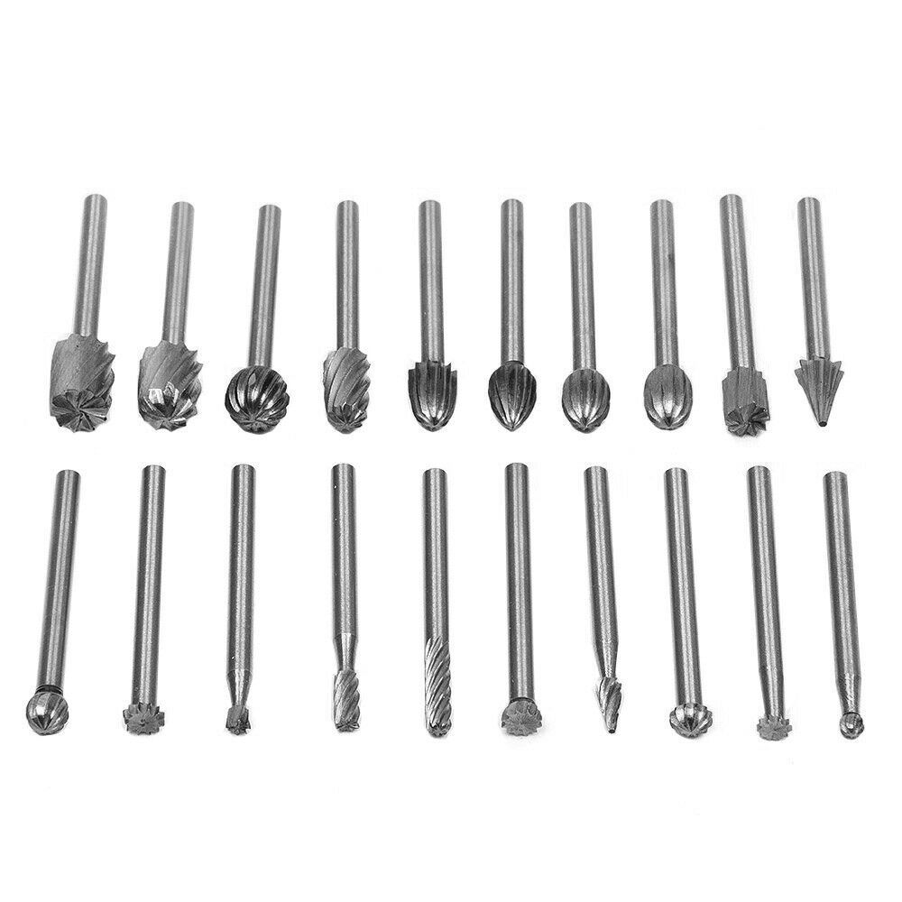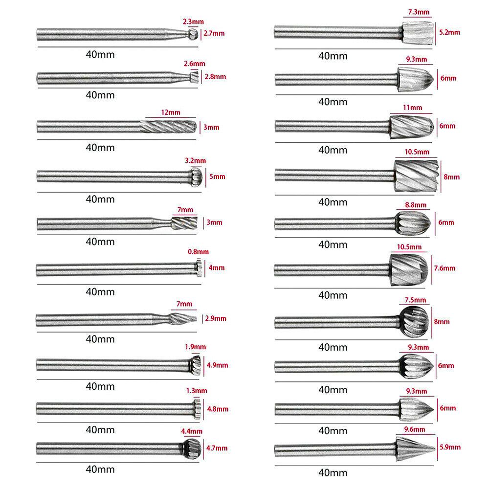 The carbide burr set includes 20pcs different grinder bits for various drilling needs, working with most small rotary tools for DIY carving.