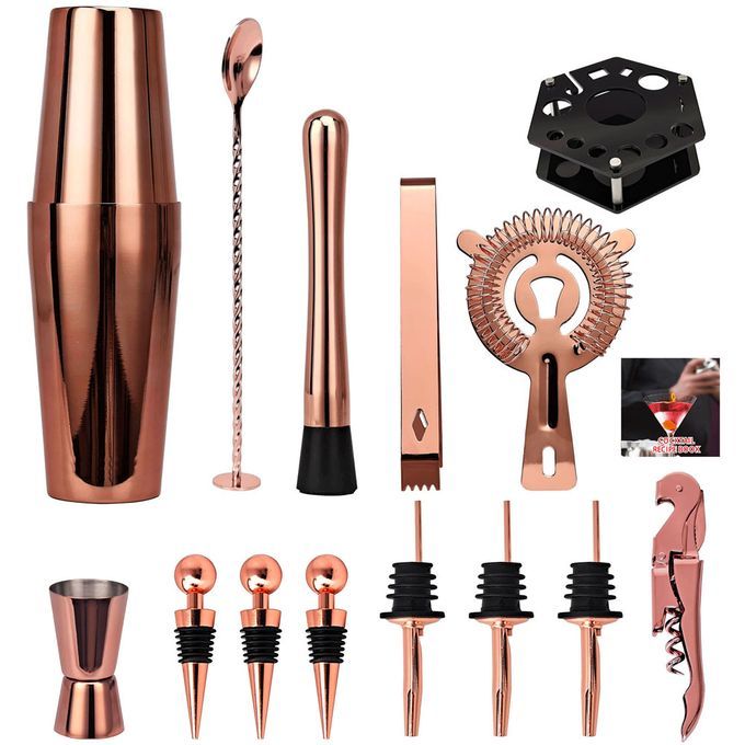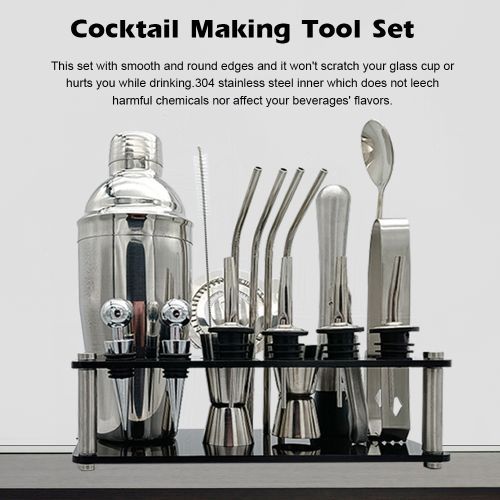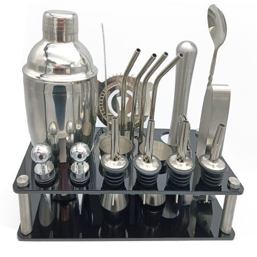This is a set of fine quality cocktail making set, with 20 pcs different tool, all tools are made of stainless steel material, tools crafted cocktail bar set as used by the pro cocktail mixers, prevents from absorption and discoloration, with fine durability. An perfect gift for both starter and professional mixers alike, as all essential tools are included. You can have a try.