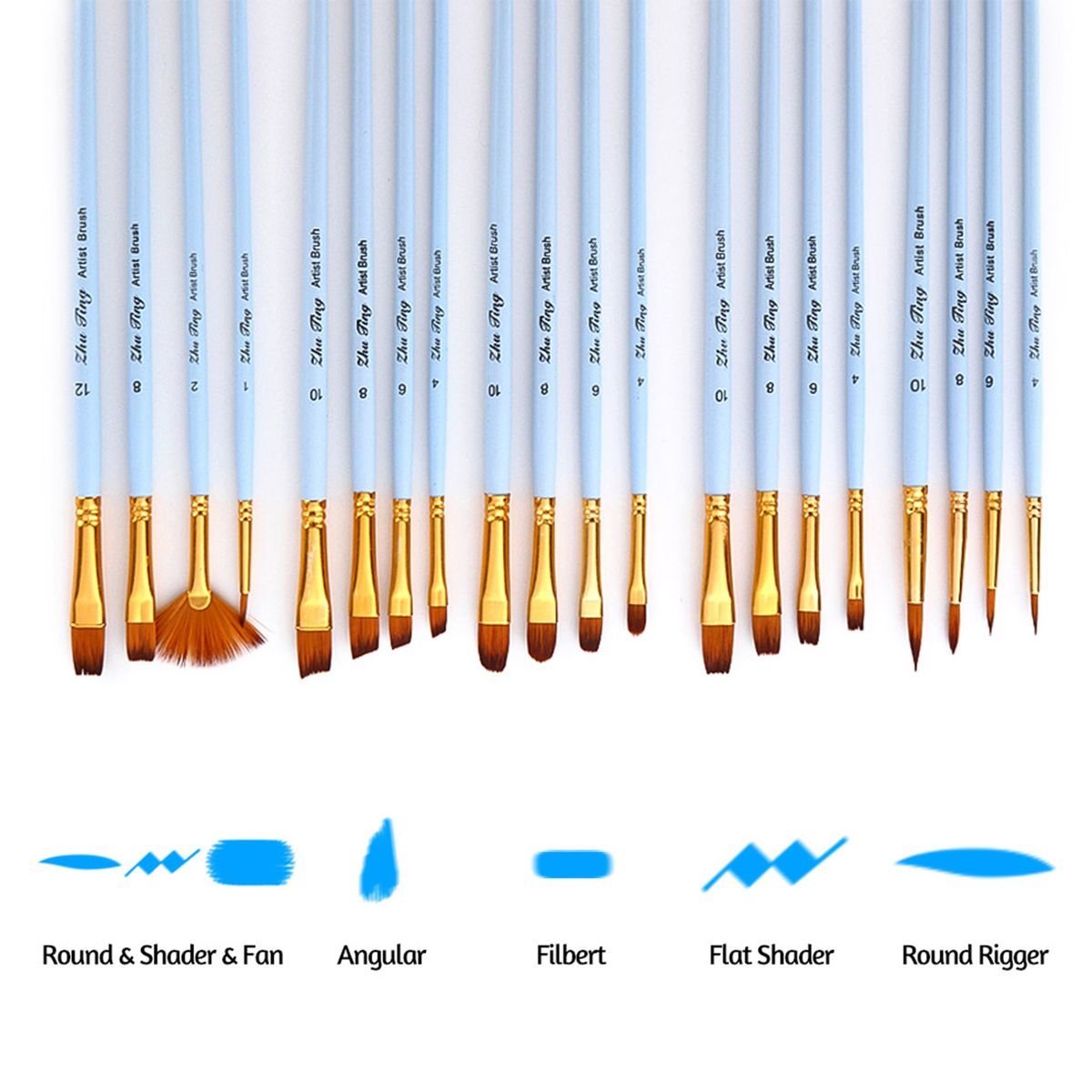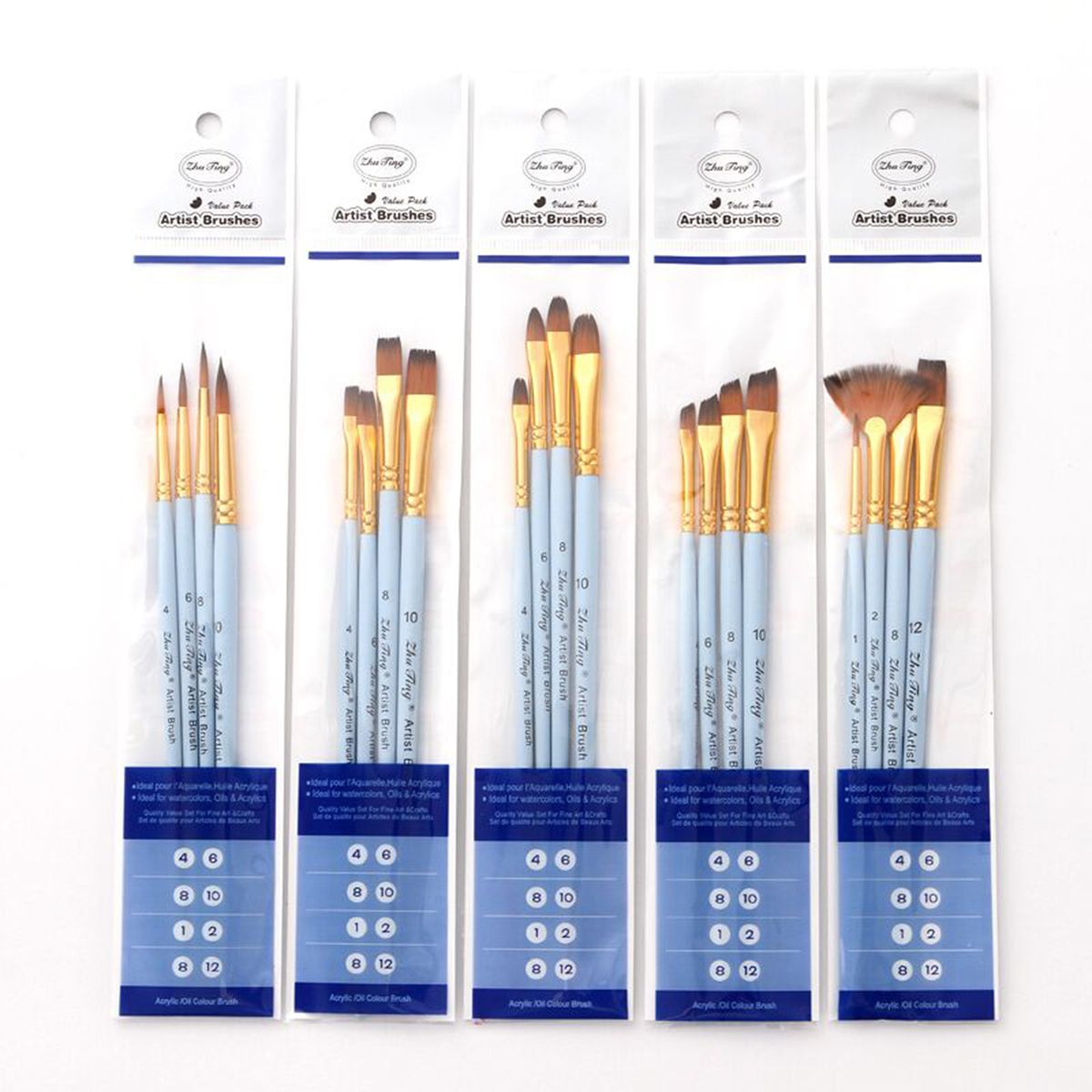 Type: Type1-Round Pen(4#,6#,8#,10#); Type2-Shader Pen(4#,6#,8#,10#); Type3-Filbert Pen(4#,6#,8#,10#); Type4-Angular Pen(4#,6#,8#,10#); Type5-Mixed with Fan(1#,2#,8#,12#)