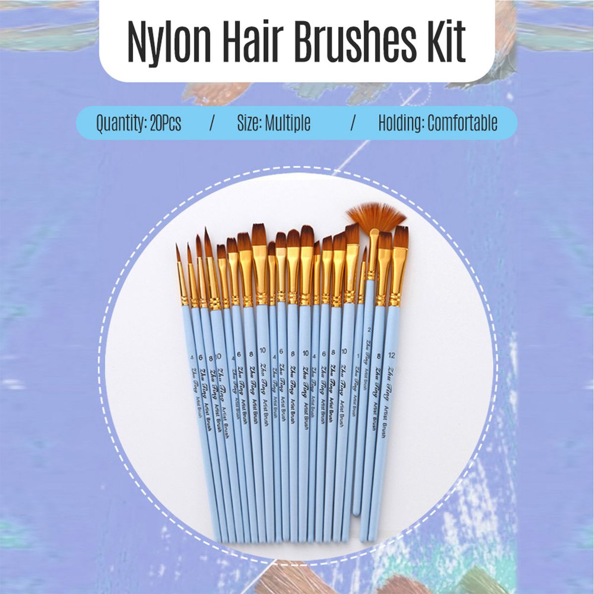 Features:Diversity: The 20pcs brushes kit with different shape or size, can meet your various painting needs; Blue/Green/Pink pen body for option, so elegant.