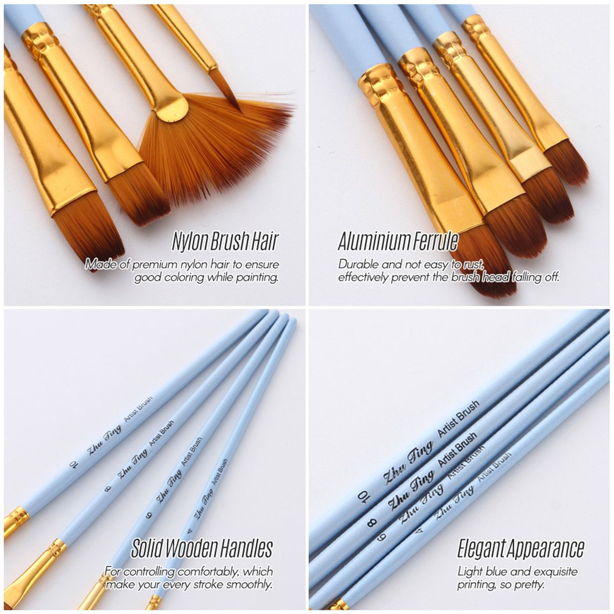 Durable Handle & Ferrule: Sturdy wooden handles for controlling comfortably, which make your every stroke smoothly and work great when you are inspired by a sudden whim; Aluminum ferrule connection, not easy to rust, effectively prevent the brush head falling off.