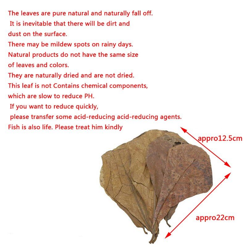 Description Size: as shown The most natural acid effect. Helps control the reproduction of mo. Color: brown Effectively help and prevent bacterial infections. Naturally lustrous color and fish color are stable. Promote the ability of fish to reproduce. Weight: 50-60 g = about 20 pieces Material: leaves