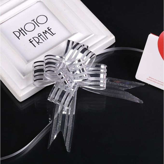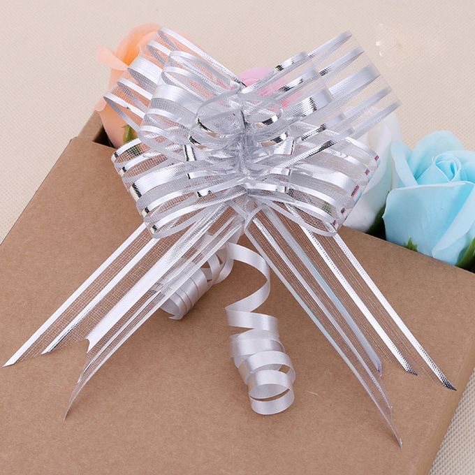 20pcs Organza Pull Bows Floristry Ribbon Wedding Gift Wrap DIY 50mm Silver