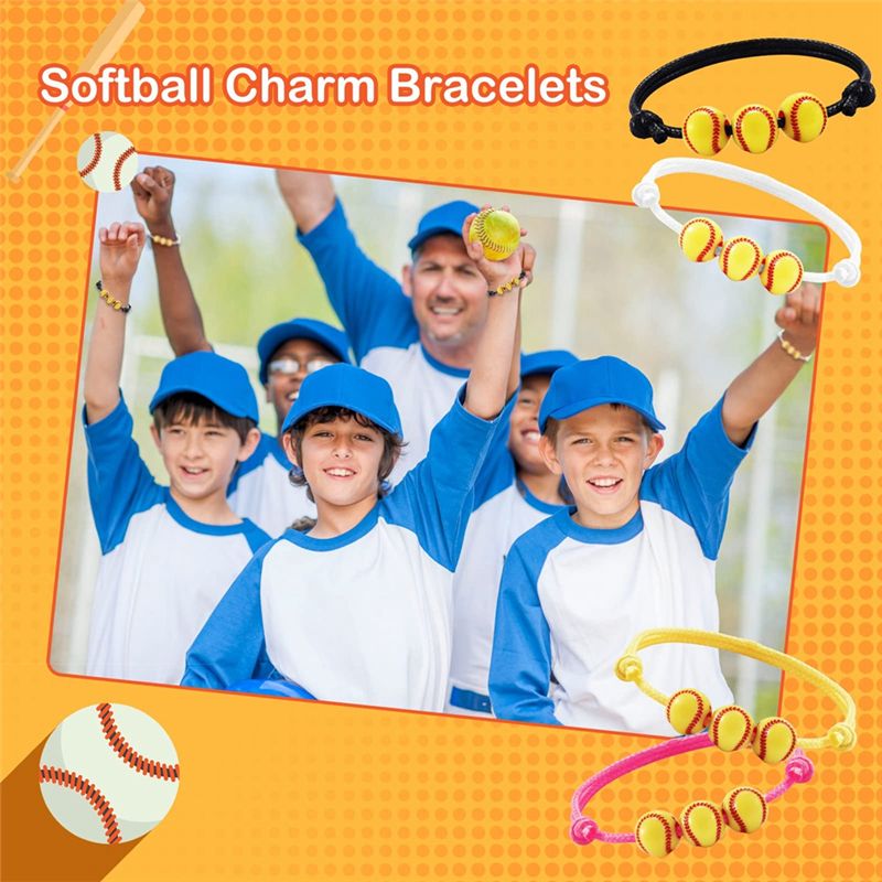 Abundant Quantity: The package comes with 20 softball bracelets, each bracelet comes with 3 softball beads, enough quantity and elegant pattern enough for you to use on baseball sports teams and fan parties