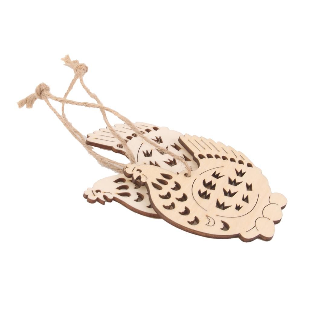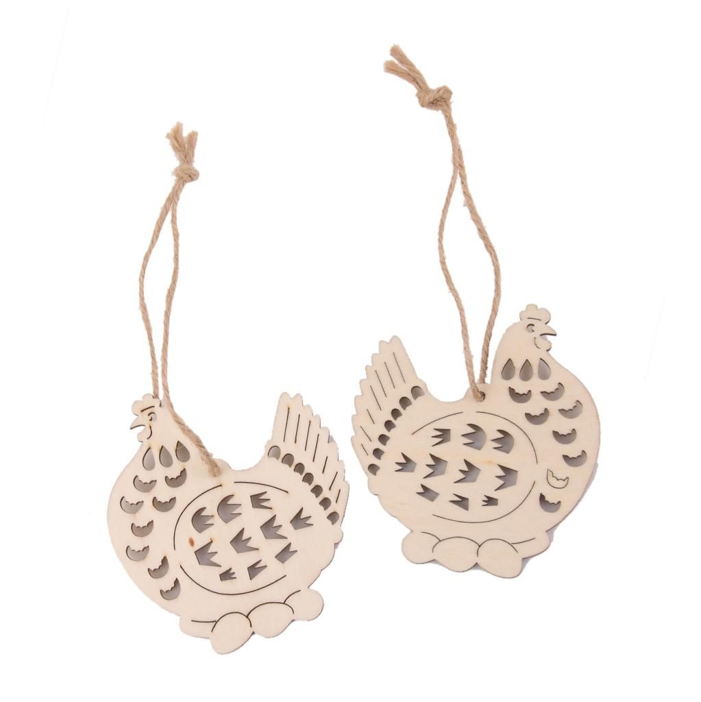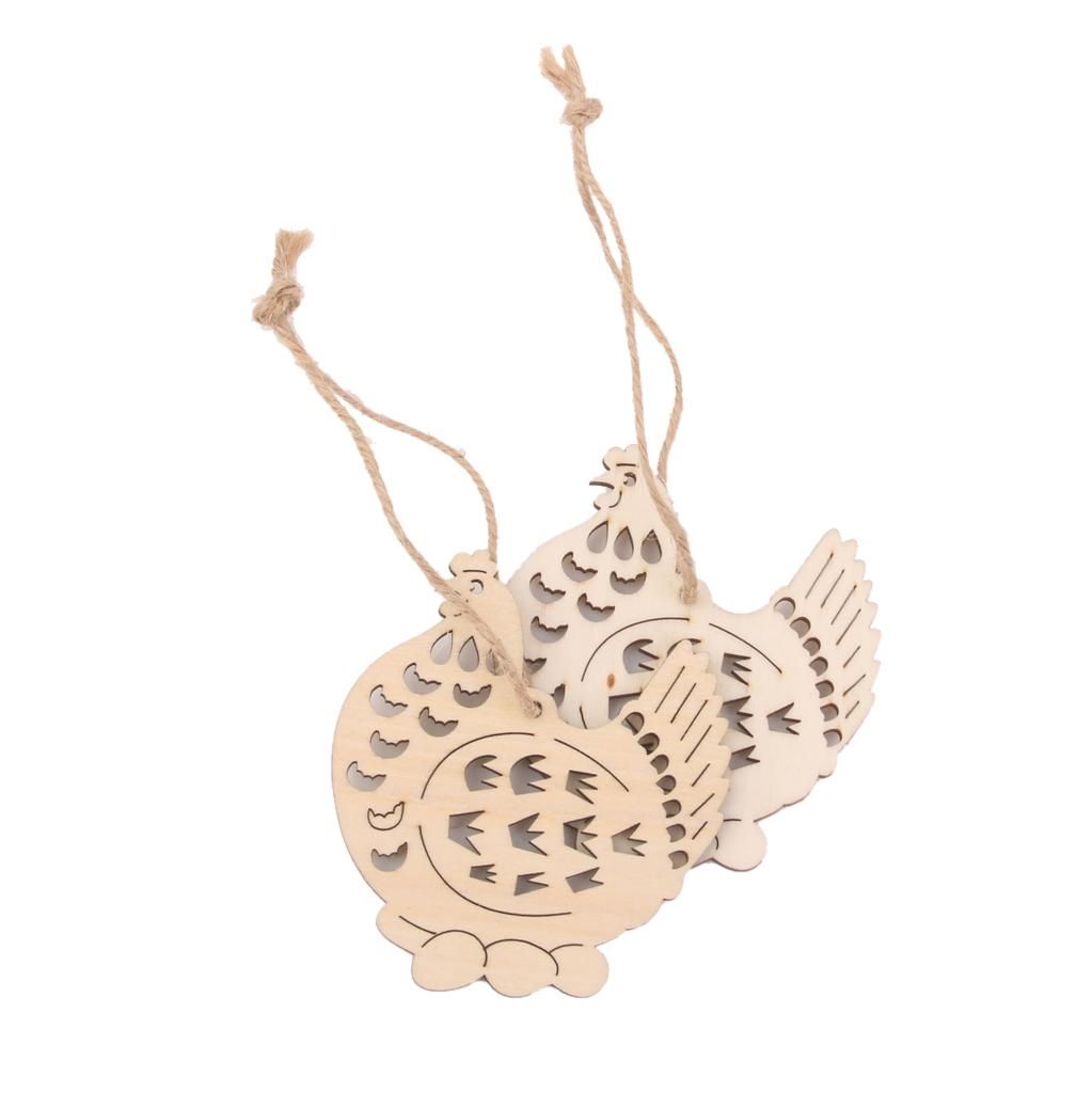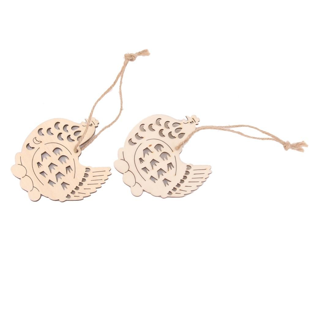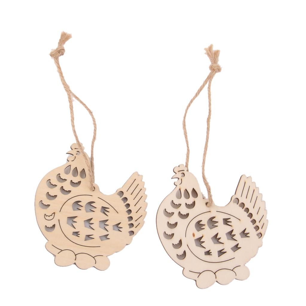 Cut wooden hen with eggs tag with hole, cut from high quality wood.