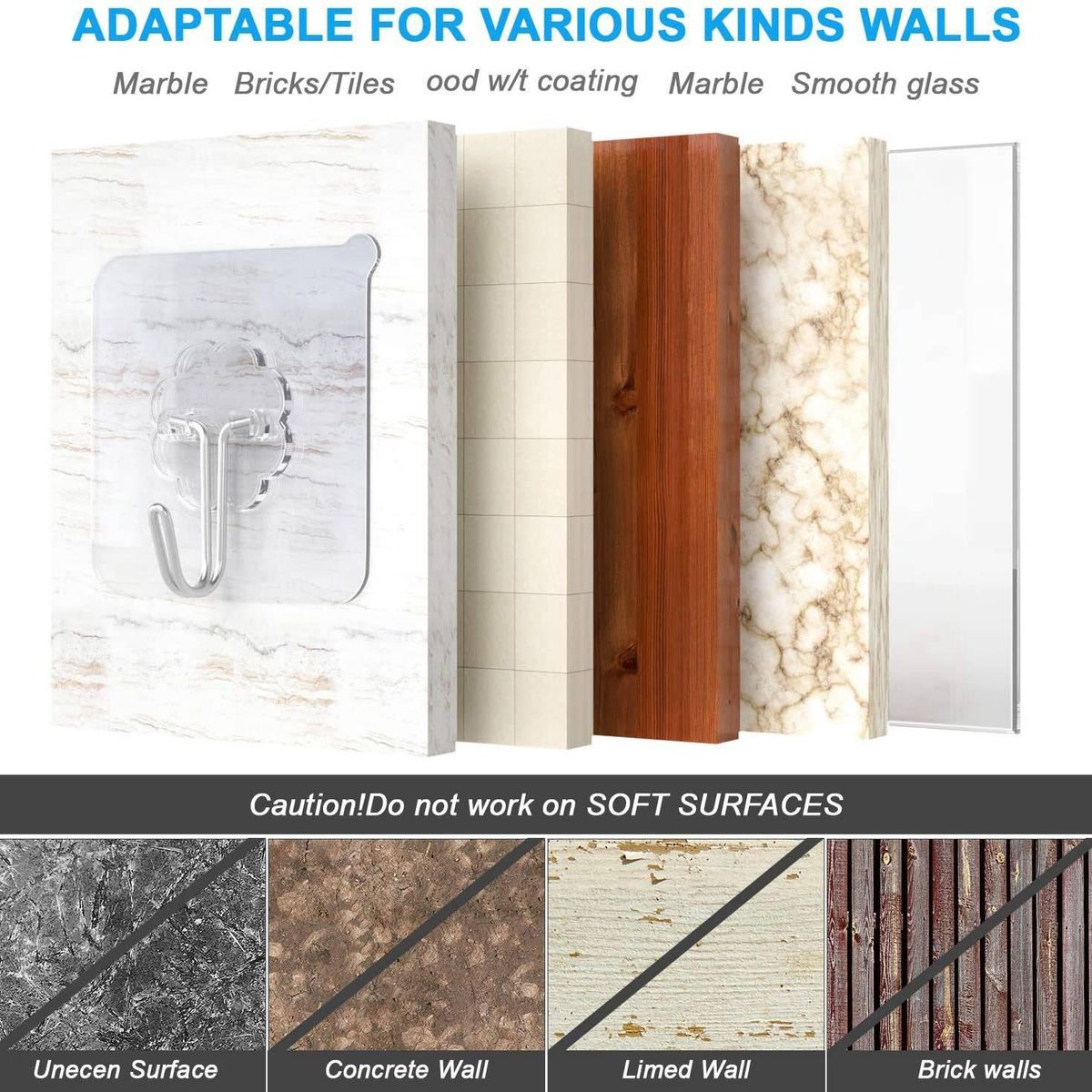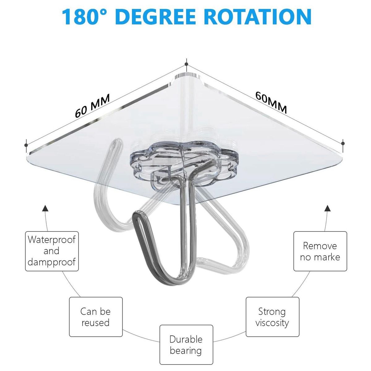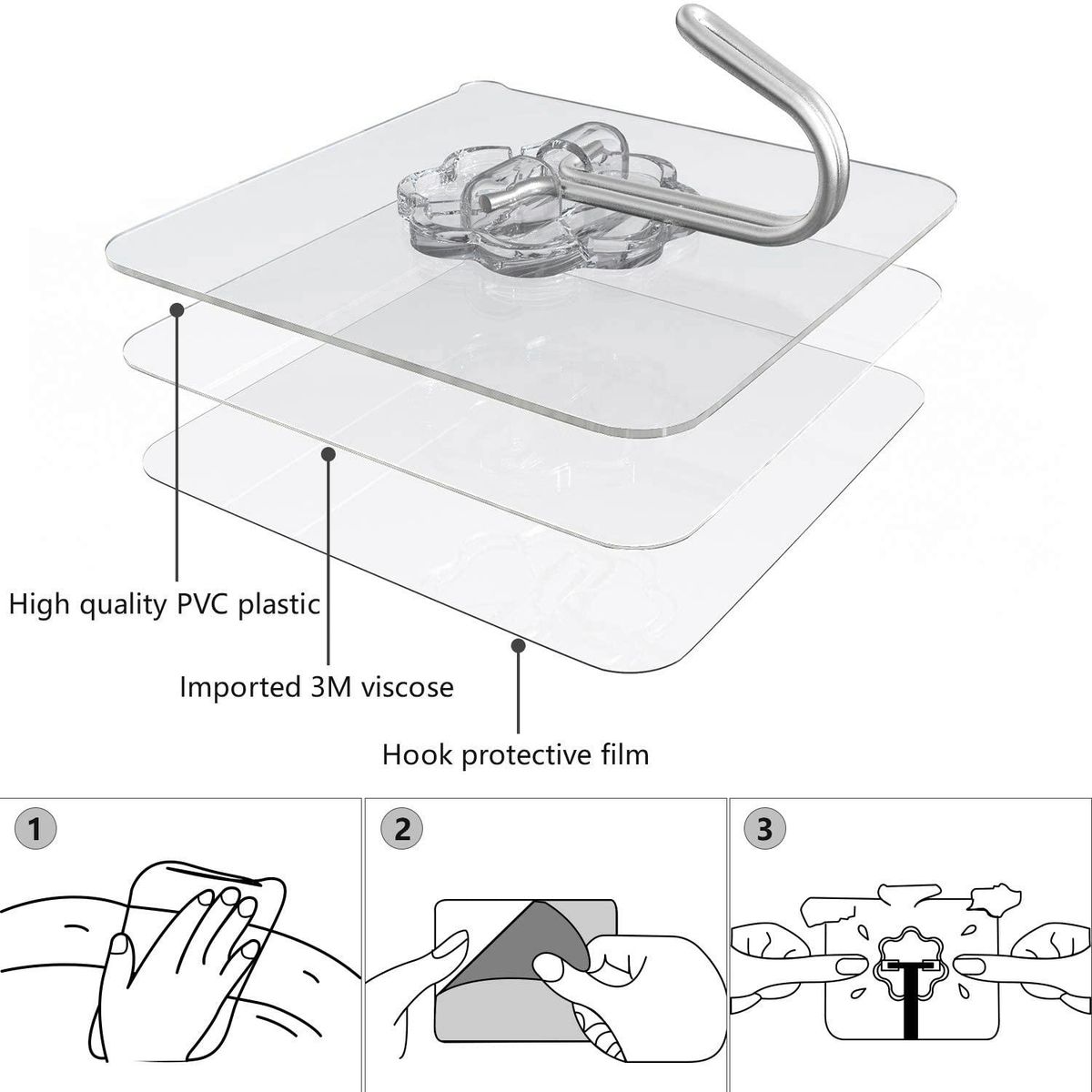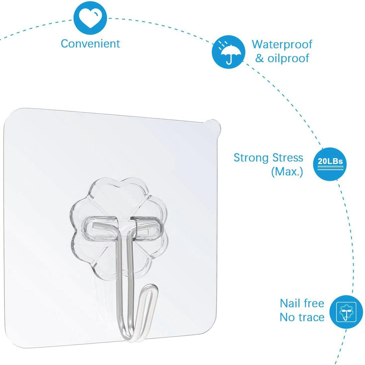 Detailed Information About The Product:1. Transparent and seamless design: The transparent base makes the seamless sticky hook almost invisible, and once removed, it will not leave any trace of glue.