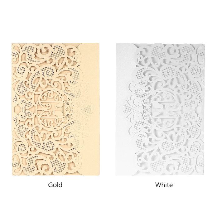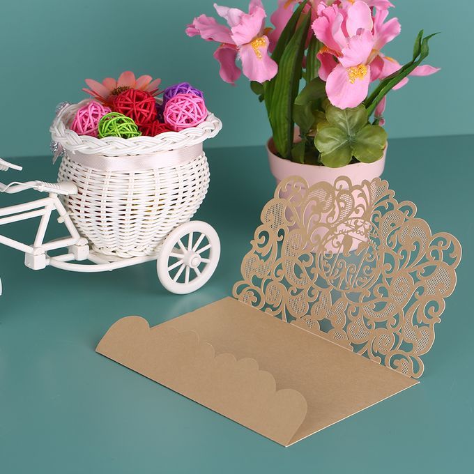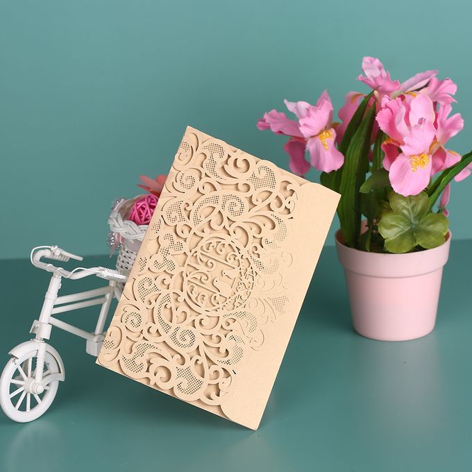 Invitation card with hollow birds and flowers pattern, designed for wedding, engagement, etc. Pearl paper material with soft pearlescent sheen, classy and stylish.