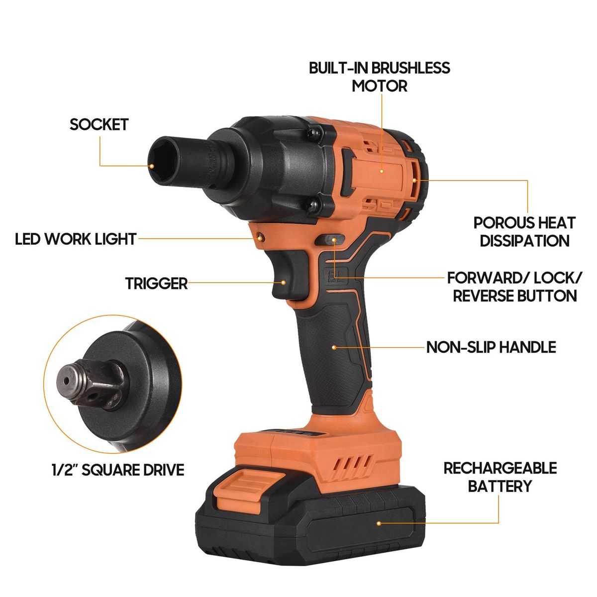 Buy 20V Cordless Brushless Impact Wrench with 1/2in Chuck Variable Speed 420N.m Torque Handheld Power Wrench with 4 Sockets 2 PCS 1.5Ah Lithium Battery Fast Charger for Removing Nuts Bolts Auto Repair in Nigeria