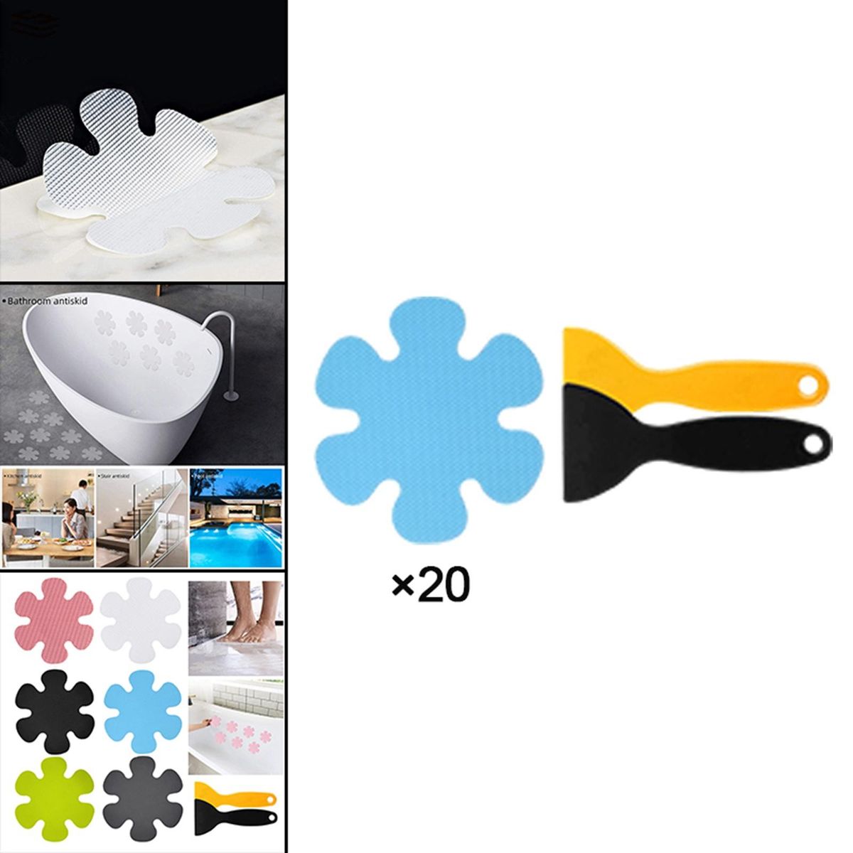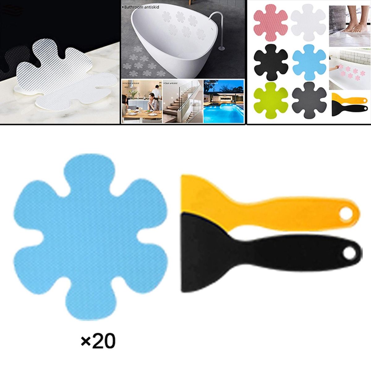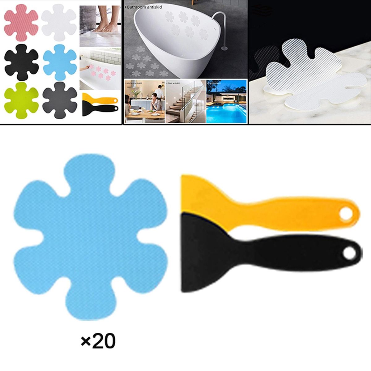 20 pieces of non slip adhesive stickers, covering more of your bathtub's surface than a typical bath mat does, offering a wider non-slip surface.