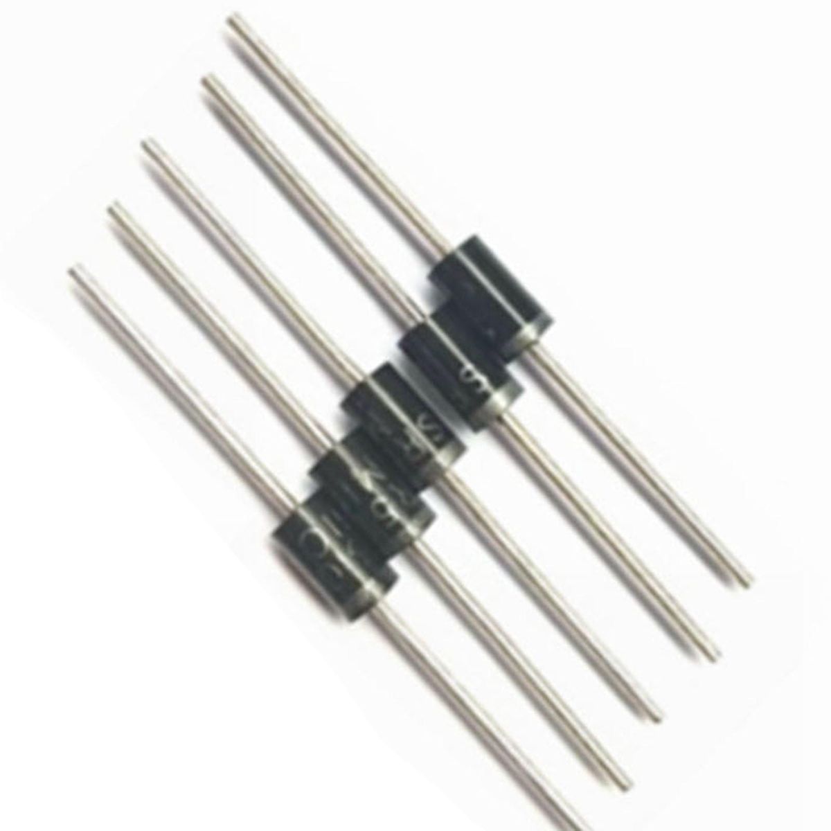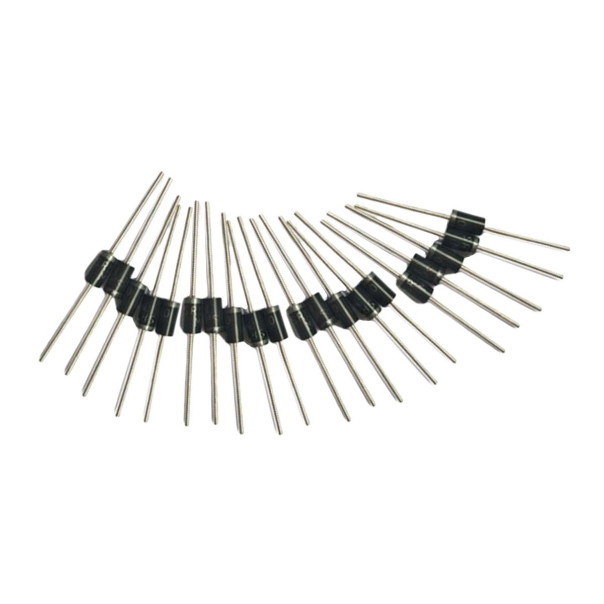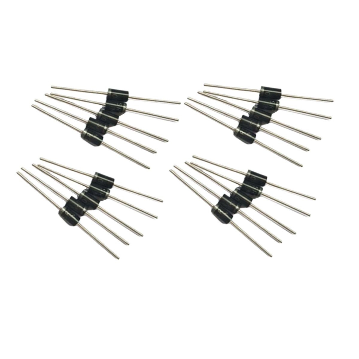 You Will Get: 20pcs Schottky Barrier DiodeUses: used for switching power supply rectification, printer power supply, chargers, electric vehicle chargers, various power supplies, ectsFeatures: The forward voltage is reduced, and the recovery time is extremely short. Maximum repetitive peak voltage: 100V, maximum forward current 5A, stable performance.Material: copper feet, silicon Pins: 2