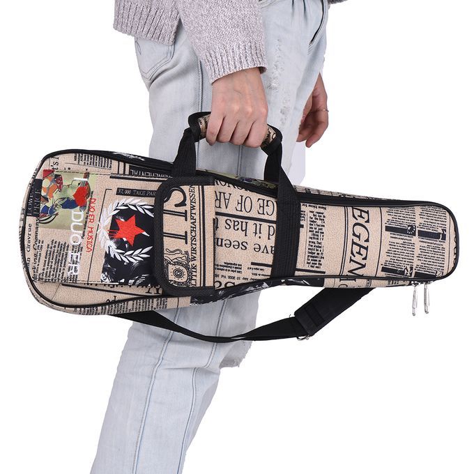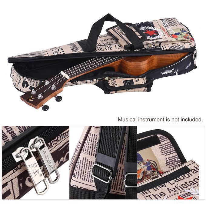 This padded 21" ukelele bag is adequate enough to protect ukelele from bumps during transport and carrying. It has two separate compartments for storage - one main zipped compartment for ukelele and the other pocket for sheet music, picks, straps and other accessories. Its backpack type straps on the back and gripped handle on the side ensure instrument can be carried however the user wishes to.
