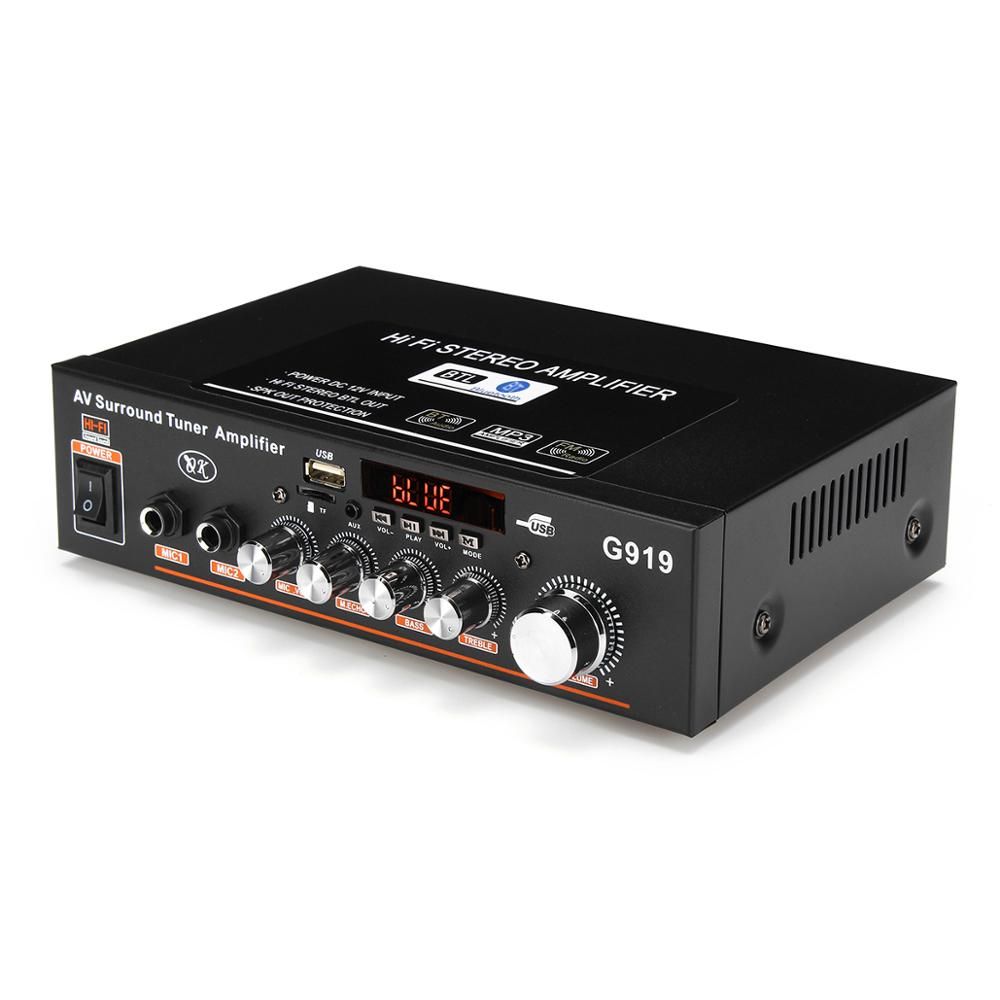 1X 360W G919 Mini Amplificador Audio bluetooth Stereo Power Amplifier FM SD Hifi 2CH Amp Music Player Power Amplifier Car 12V 220V