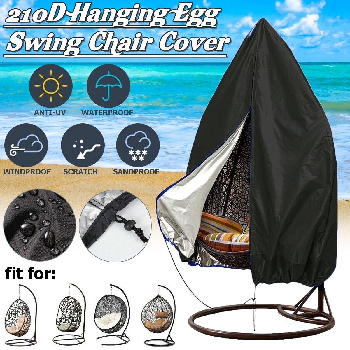 210D Patio Hanging Egg Swing Chair Cover Windproof Protector Outdoor Indoor