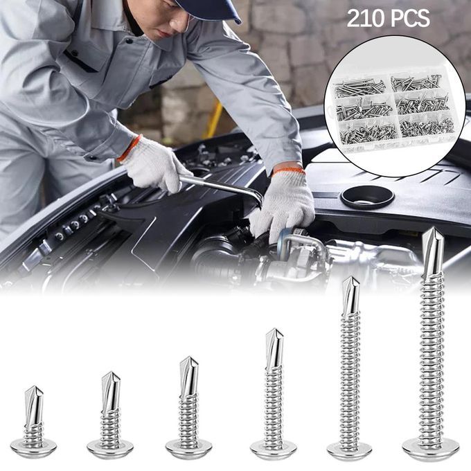 50 Pieces M4.2x13mm 50 Pieces M4.2x19mm40Pieces M4.2x25mm 30Pieces M4.2x32mm20Pieces M4.2x38mm20Pieces M4.2x50mm 1 Piece Storage Box