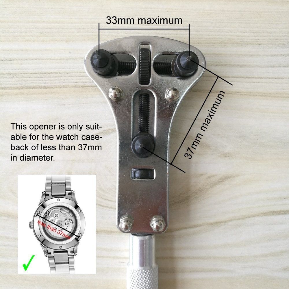 Meet most watch repairing needs, such as: remove spring bar and link, open watch back, battery-replacement changing, watchband resizing and other common adjusting.