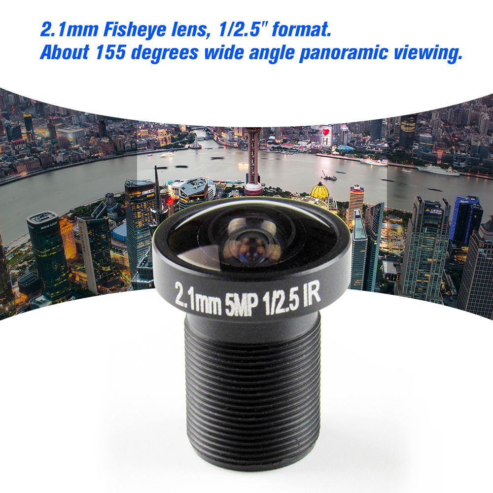 *2.1mm Fisheye lens, 1/2.5 quot; format. About 155 degrees wide angle panoramic viewing.