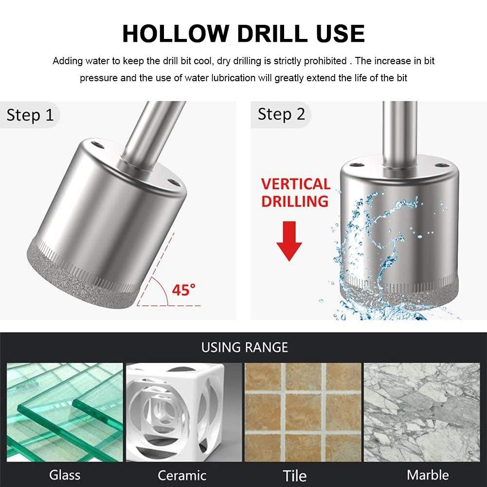 Widely Use: This diamond hole saw suitable for drilling holes in tiles, glass, ceramic, marble, countertops, granite, etc. When the diamond bit is working, please continue to add water to reduce the drilling speed, reduce the drilling pressure, and increase the water lubricity, which will greatly extend the life of the bit.