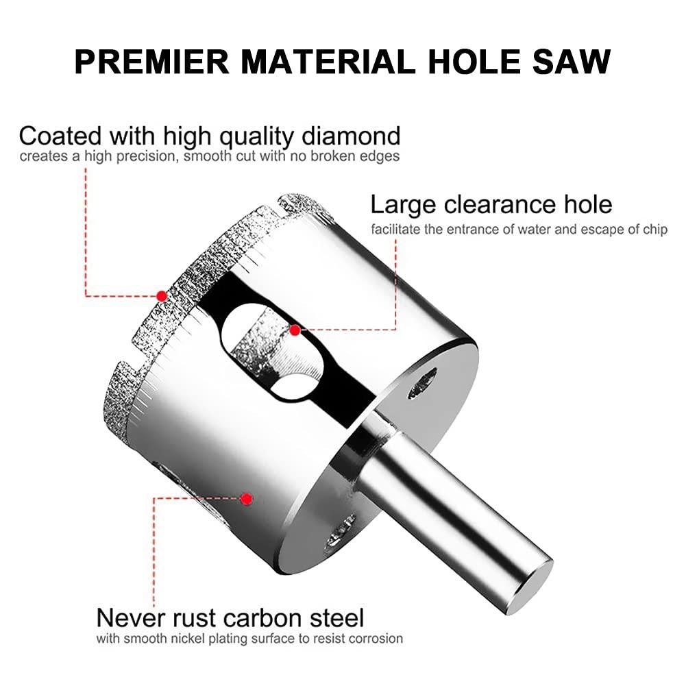 Quality Material: Our diamond drill bits are made of industrial-grade carbon steel and are coated with a nickel-plated coating to prevent corrosion. The diamond hole saw can increase the drilling speed and create a sharp, high-precision and smooth cut in a few seconds without broken edges.