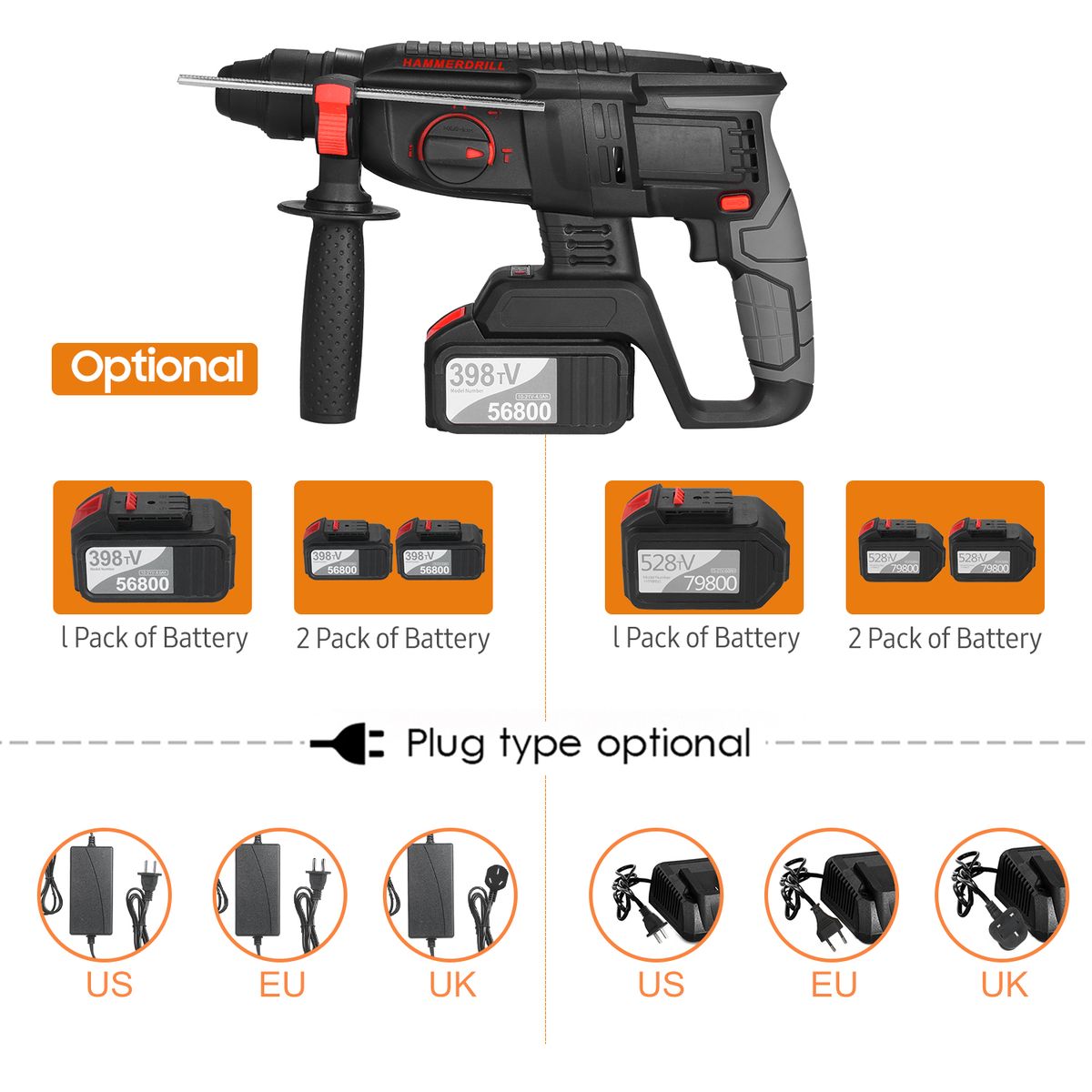Digital Brushless Motor --- Provides efficient, high-performance power when drilling through tough surfaces like brick, concrete, and other masonry. And no need replace carbon brush and with larger motor rotor stator, lower power consumption longevity and no burn-in phenomenon.