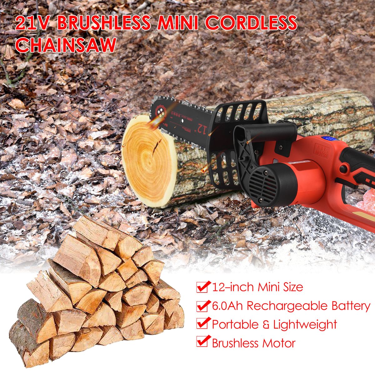 Brushless Motor, High Performance -- Handheld cordless electric pruning saw adopts brushless motor which provides more run time and increases pruning efficiency, also its service life is longer than conventional brush motor, which greatly saves maintenance costs due to motor damage.