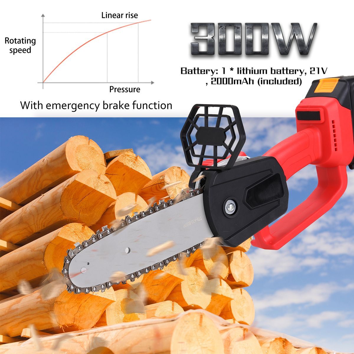 Rechargeable electric chain saw, light and portable, long battery life, no damage to the bark.
