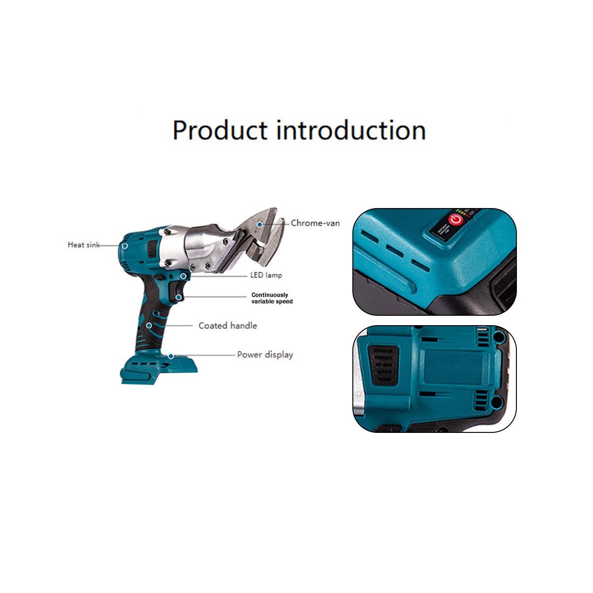 [One-handed Operation]The metal cutter is ABS engineering plastic, durable. Chrome Vanadium Steel Bits, stronger than other, good durability.With LED work light illuminates surface.Compared with the hand- type, the silicone handle can reduce the shock, avoid hand soreness caused by long-term work, and feel comfortable and ergonomic.