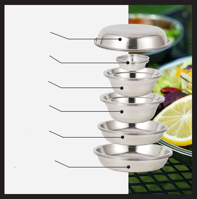 Product name: 22 set plate Size: 23*23*8cm (storage bag size) Weight: about 1530g Material: 201 stainle steel, sauce plate 304 stainle steel Place of Origin: made in china