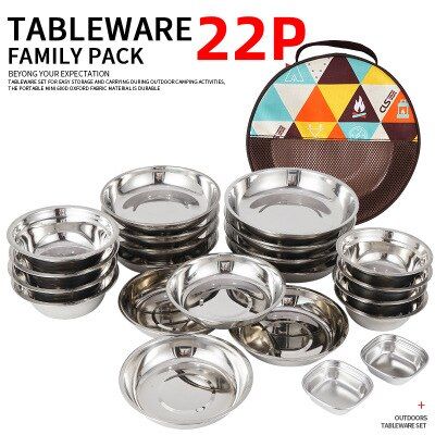 1X 22-piece Portable Dinner Plate Set of Outdoor Camping Tableware Self-driving Tour Barbecue Plate Household Soup Bowl Dish Set
