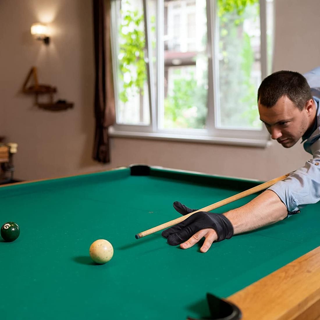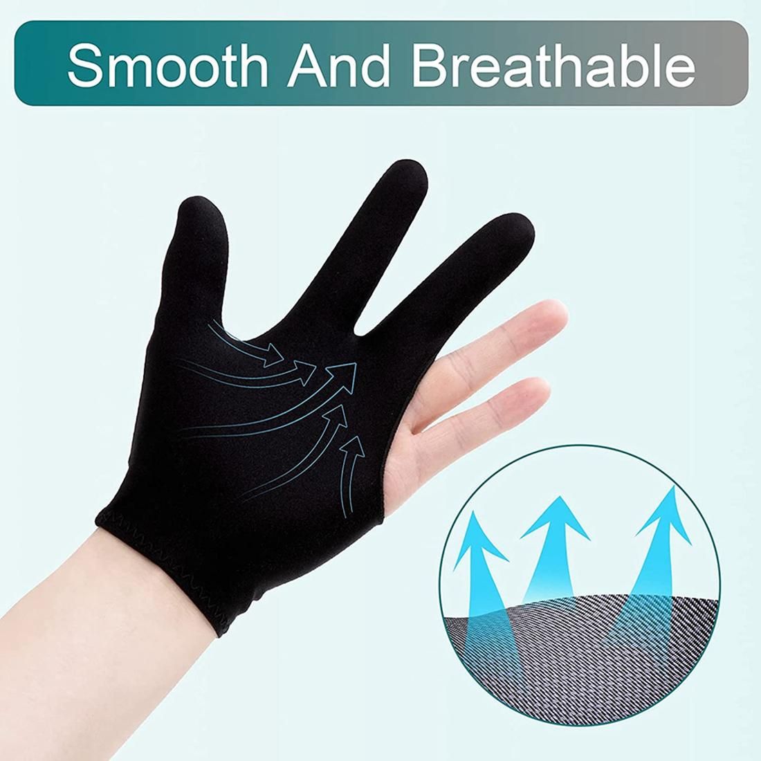 [Easy to Wear]The glove is stretchy and comfortable, the stretchy design is suitable for both men and women, no need to worry about the wrong size.Shooter pool gloves easy to put on and can be reused.
