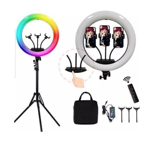 Buy 22" Rgb Ring Light 56cm Multicolors + Tripod Stand + Remote + Bag + 3 Phone Stands in Nigeria
