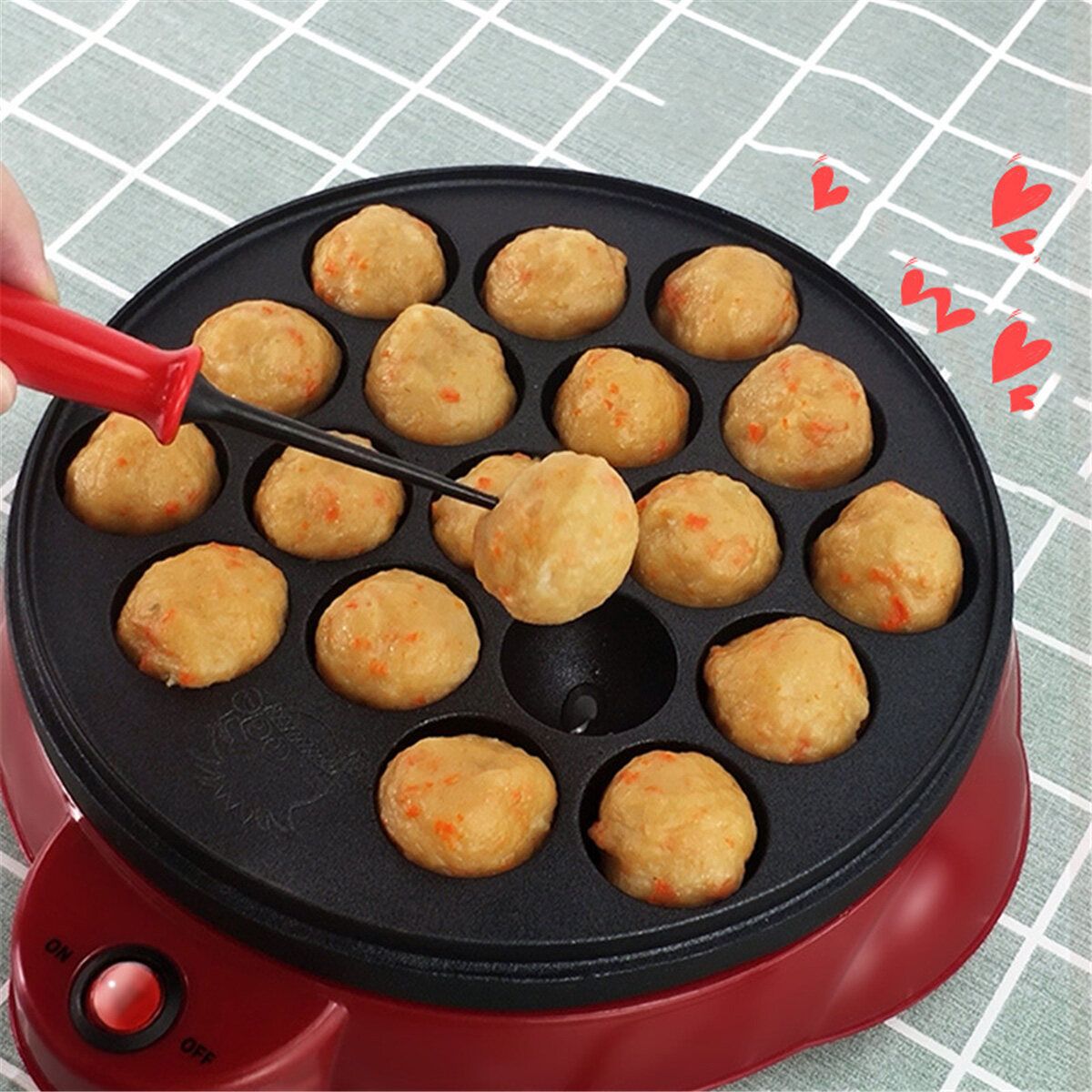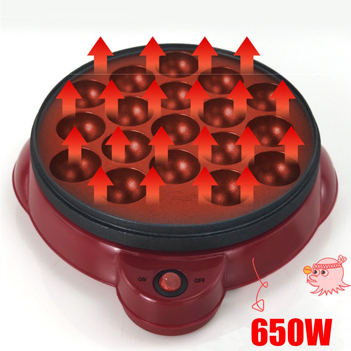 Features:- Non-stick baking dish, durable and easy to clean,- 18 molds in a tray, easy to use for making delicious Japanese Takoyaki or delicious meatballs.- Automatic temperature adjustment with ready lights.- This product can be widely used in snack street, dining room, restaurants, cafes, bars, cafeteria processing services, schools and individual restaurants, etc.Specifications:Model: HSS-400Power: 650wVoltage: 220VAperture: 40mmSize: 287*260*76mm/11.29*10.23*2.75"Weight: about 1.2kgPlug type: US/AUPackage Included:1 x Electric Meatball TrayNote:1.Pleaseallow0.5-1cmdifferencesduetomanualmeasurement.2.Duetothelightandscreendifference,theitem'scolormaybeslightlydifferentfromthepictures.