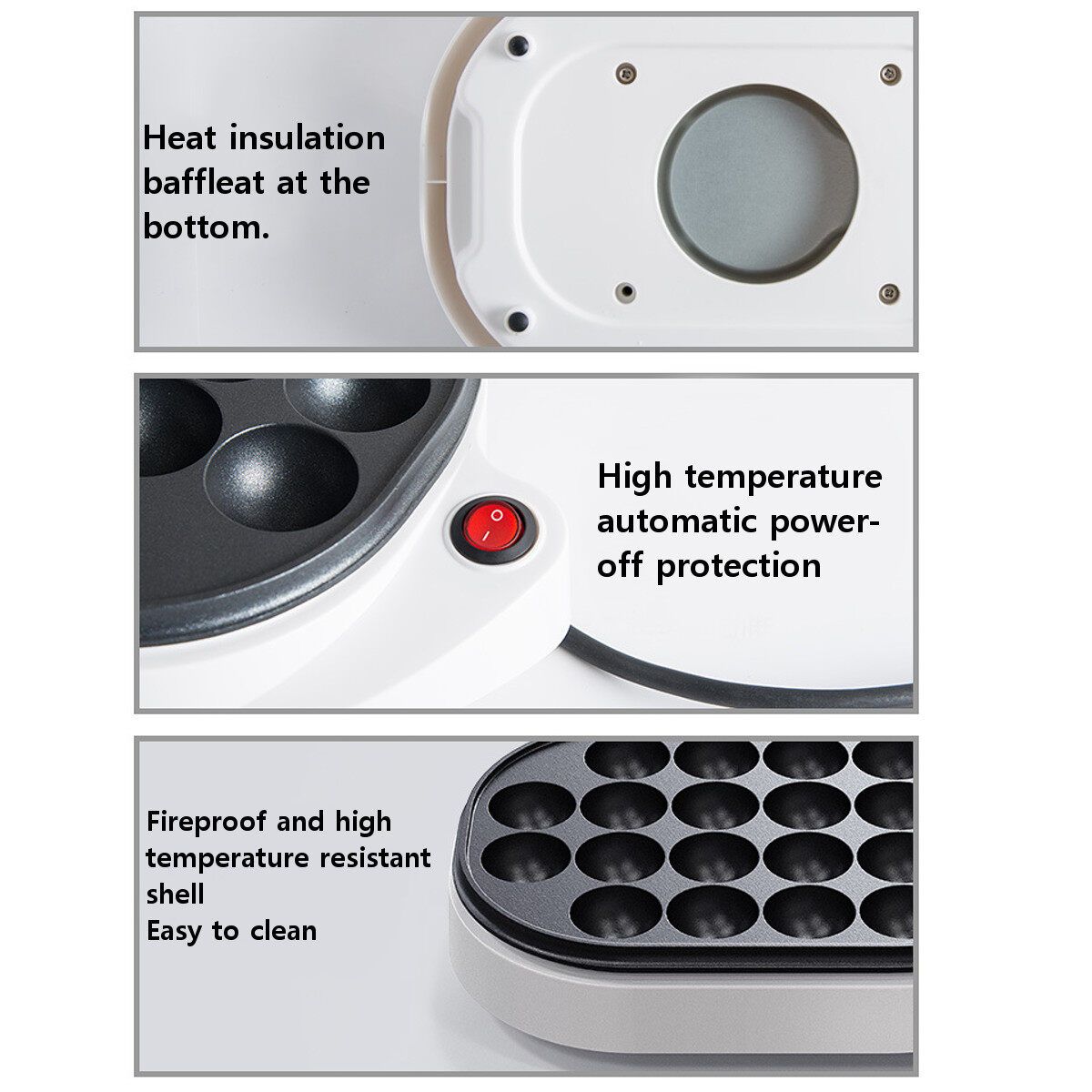 220V 650W 20 Holes Electric Takoyaki Grill Pan Home Octopus Meat Ball Maker Plate MachineSpecification:Name: Takoyaki GrillColor: WhiteMaterial: +AluminumRated : 650WItem Size: approx.325x200x72mm/12.8x7.88x2.84"(1cm=10mm=0.39inch)Measurement Details in the attached picture.Package Include1x Takoyaki Grill(Food is not included!)Features1. 20 holesTakoyakiGrill Pan, you can make takoyaki octopus ball at home.2. Double use, you can use the pan for takoyaki beef/meat, etc.3. Independent ON/OFF switch, it is easy to use.4. Fireproof and high temperature resistant shell5. High temperature automatic -off protection6. Using food-grade material, safe and durable.Strong and firm Aluminum alloy material, thick, and non-stick.7.Food grade coated baking pan, with excellent non adhesive, easy to clean.Healthy and convenient.8. Heat insulation baffleat at the bottom.Notice:1.The real of the item may be slightly different from the pictures on website caused by many factors such as brightness of your and light brightness.2.Please allow slight deviation for the measurement data.3.Please allow 1-3cm error.Ifyouhaveanyquestions,pleaseletusknown.Hopeyouhaveahappyshoppingtime!Detail Image