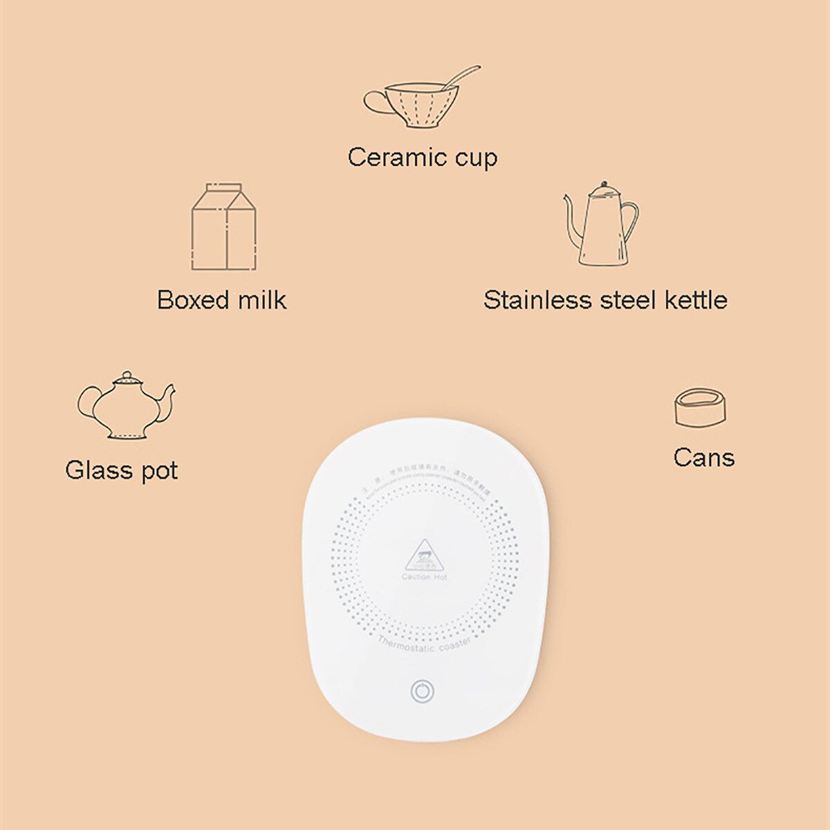 ?MAINTAIN OPTIMAL TEMPERATURE: This mug warmer can turn hot water into warm water,and heat cold water. keep or warm up the temperature to as high as 131℉/55℃,Suitable for tableware: metal, ceramic, enamel, tile, high temperature plastic, glassware etc. Flat bottom cup isbetter to keep warm.