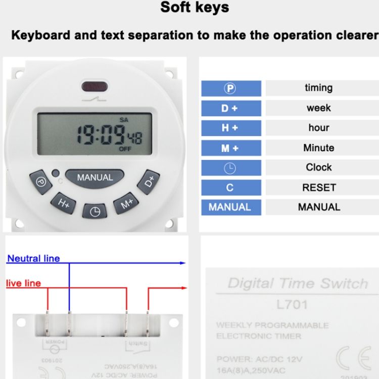 3. The program supports 16 sets of switches per day, different periods of on-off can be set every day of a week, with program memory, one-time setting, long-term cycle