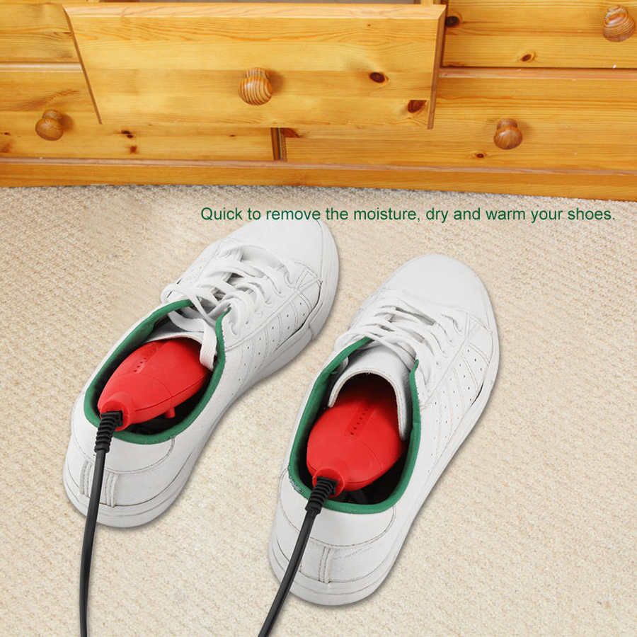 This electric shoe dryer is an advisable device for daily and travel use. It is quick to dry your wet shoes in rain or cold weather. Helps to remove odor and makes your shoes not easy to be infected with bacteria. When you wear the shoes ar drying, your foot will feel so warm and comfortable. Features: High quality plastic shell is not easy to aging, sturdy and durable. Premium electronic components ensure quick drying. Quick to remove the moisture, dry and warm your shoes, suitable for leather shoes, sports shoes, cotton shoes, boots, gloves and more. Heat diipation holes at the shell for quick heat emiion and quicker drying . Helps to eliminate the breed of various bacteria, keeping your foot comfortable and healthy. The temperature will maintain at the temperature to dry fabric and won't burn it. Specification: Condition: 100% Shell Material: ABS Color: Red Rated Power: 10W Voltage: 220V Plug: EU Plug Size: Approx.14*5.3*3cm/5.51*2.09*1.18in Cable Length: Approx. 1.2m/3.94ft Weight: Approx.179g/6.3oz Package List: 1 * Set of Shoe Dryer Note: 1. Please kindly make a note if you need any adapter. 2. Please allow 0-2cm error due to manual measurement. Thanks for your understanding. 3. Monitors are not calibrated same, item color displayed in photos may be showing slightly different from the real object. Please take the real one as standard.