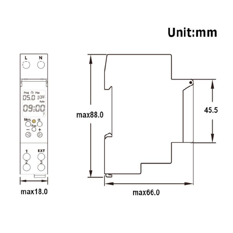 18mm DIN time switch supports 24 hours/7 days a week programmable.