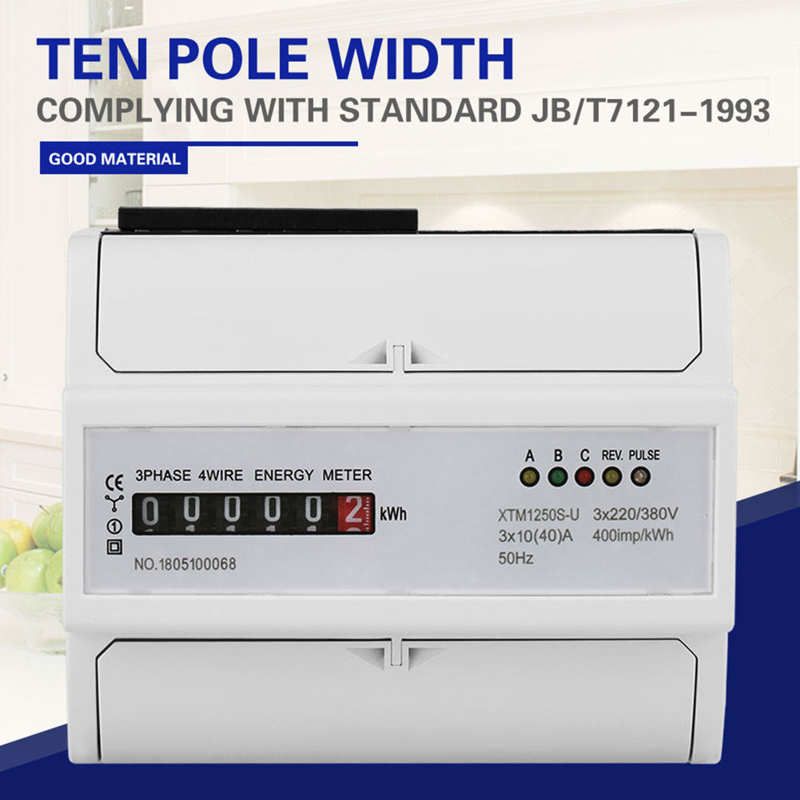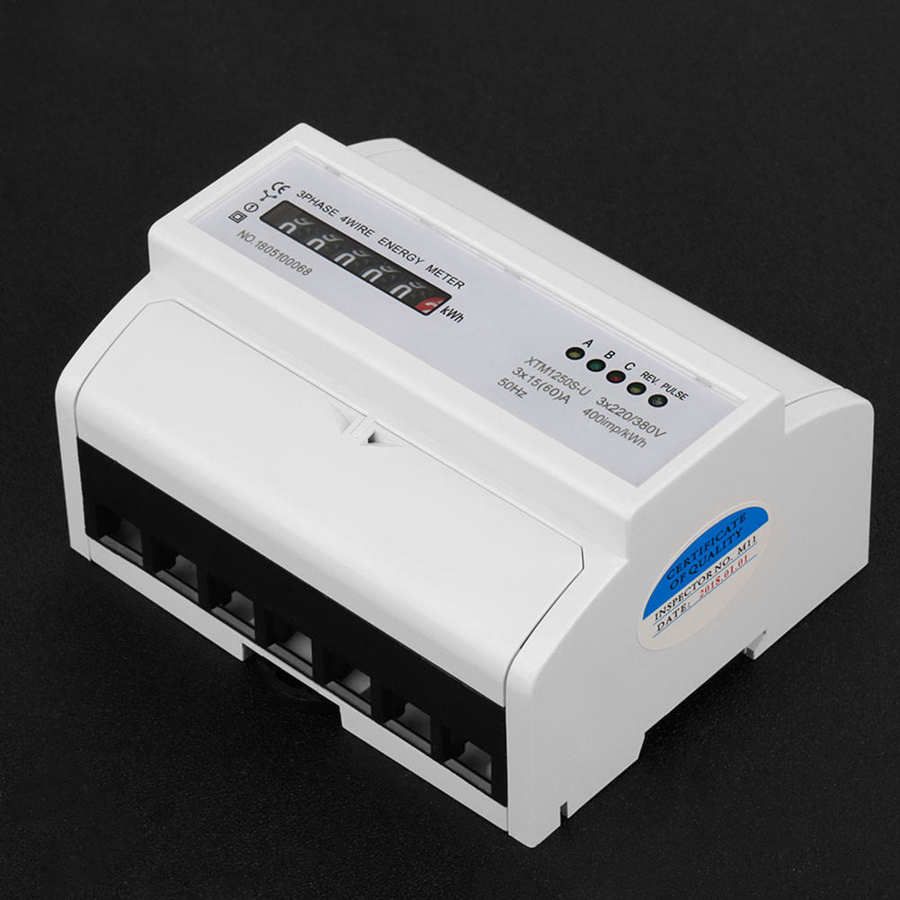 1X 220V/380V Digital 3-phase 4 Wire Energy Meter Home Digital Electrical 7P DIN-Rail Consumption Meter Electric Power KWh Meter