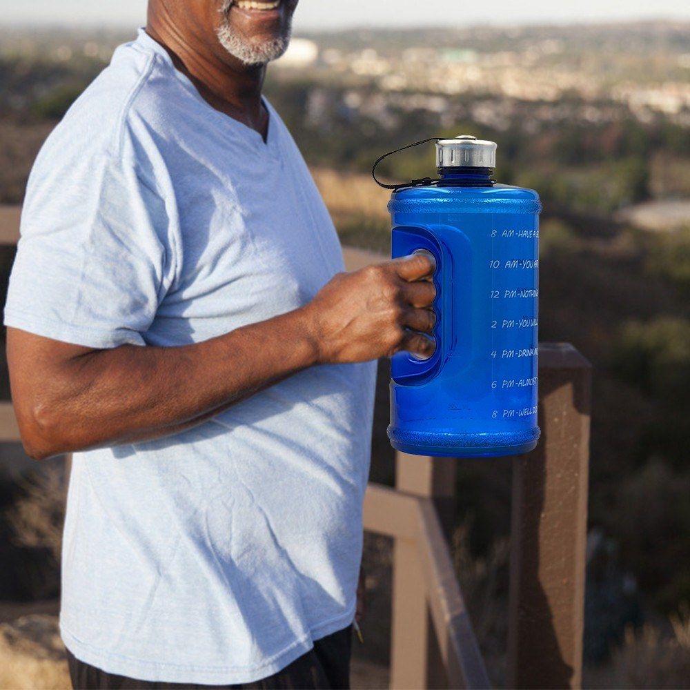 This water bottle features 2.2L large capacity and time marker to give you great motivation for staying hydrated and achieving your goals. It is great for fitness, workout, camping, hiking, and other sports.