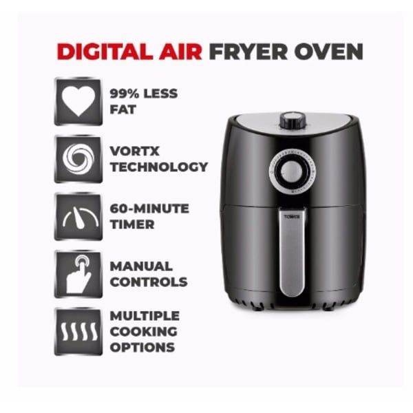 - Temperature control: The adjustable dial ranges between 80 - 200 Degree so you can easily cook a variety of meals, including vegetables, chips, chicken and cake