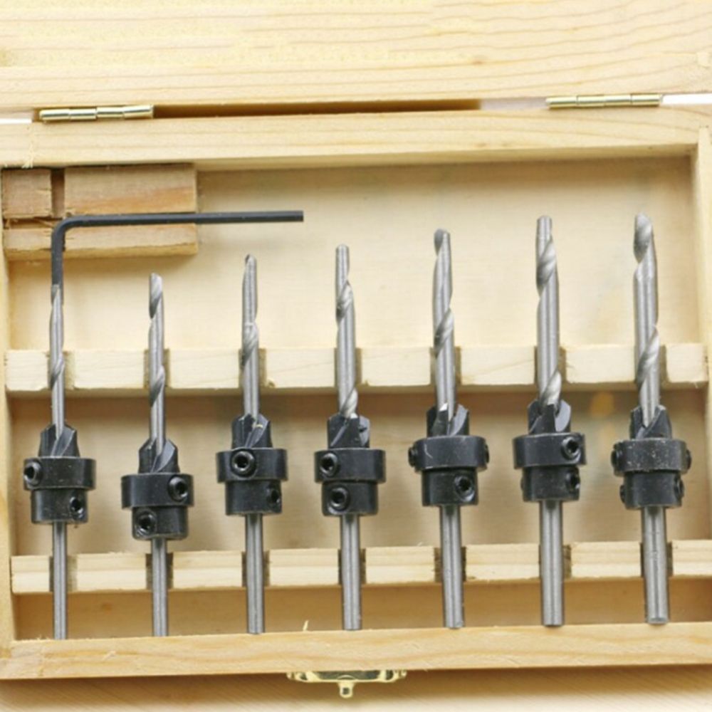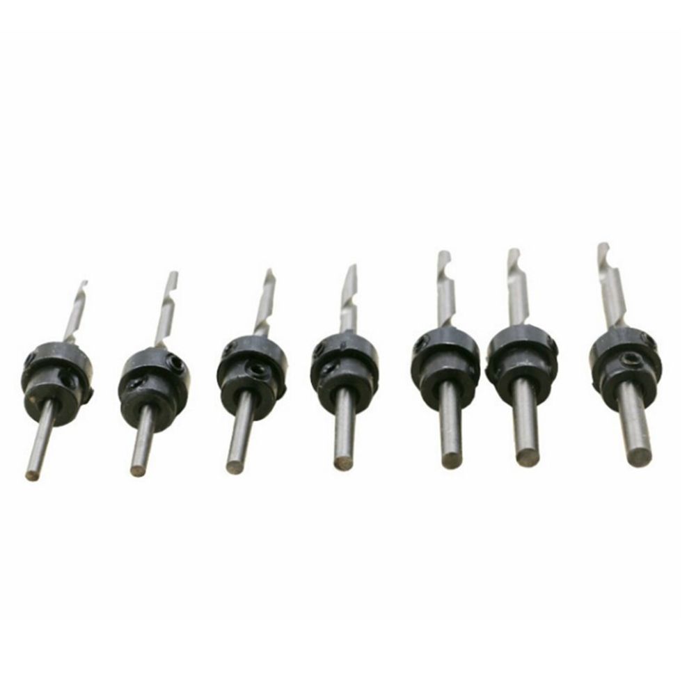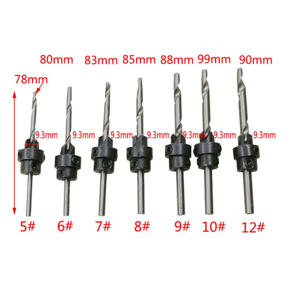 Seven drills, seven countersinks, seven stop collars.