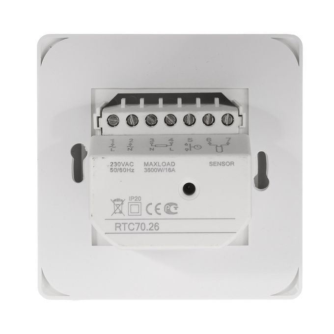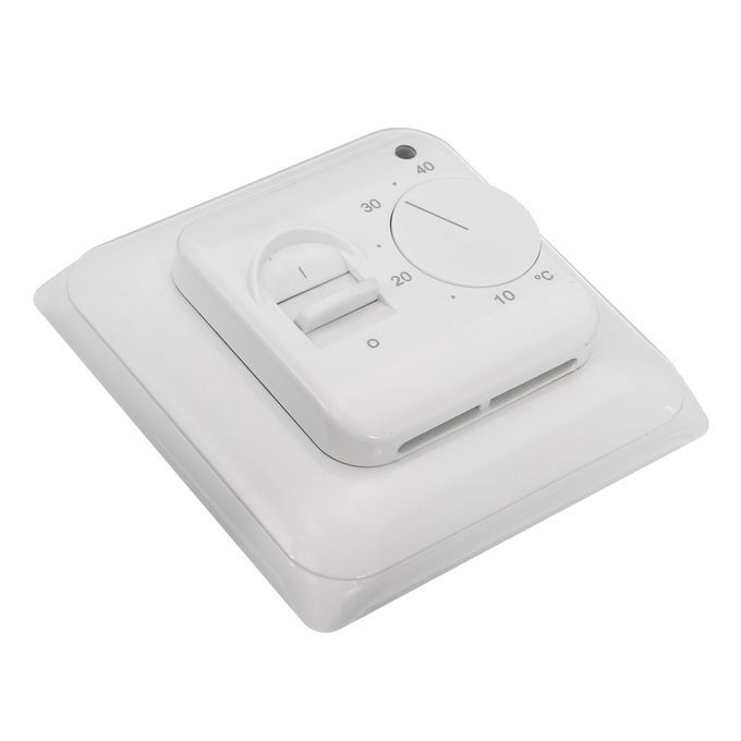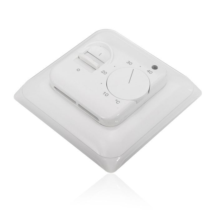 The heating thermostat is manual switch and knob operation, acquire the room temperature with its floor sensor.