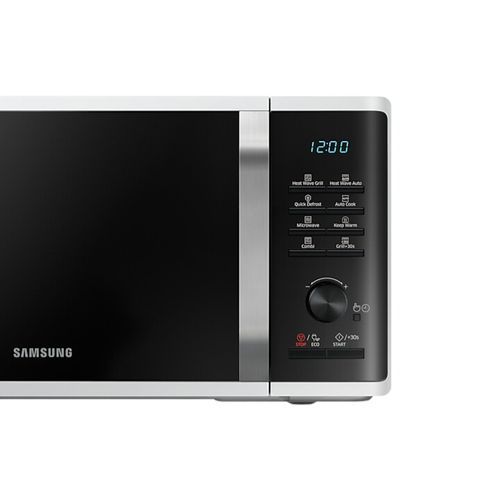 The Samsung Heat Wave Grill system prepares perfectly grilled food. Its Triangulated Heat Technology uses a grill, heat reflector and fan circulated hot air to cook quickly and evenly and Heat Wave Auto simplifies settings.