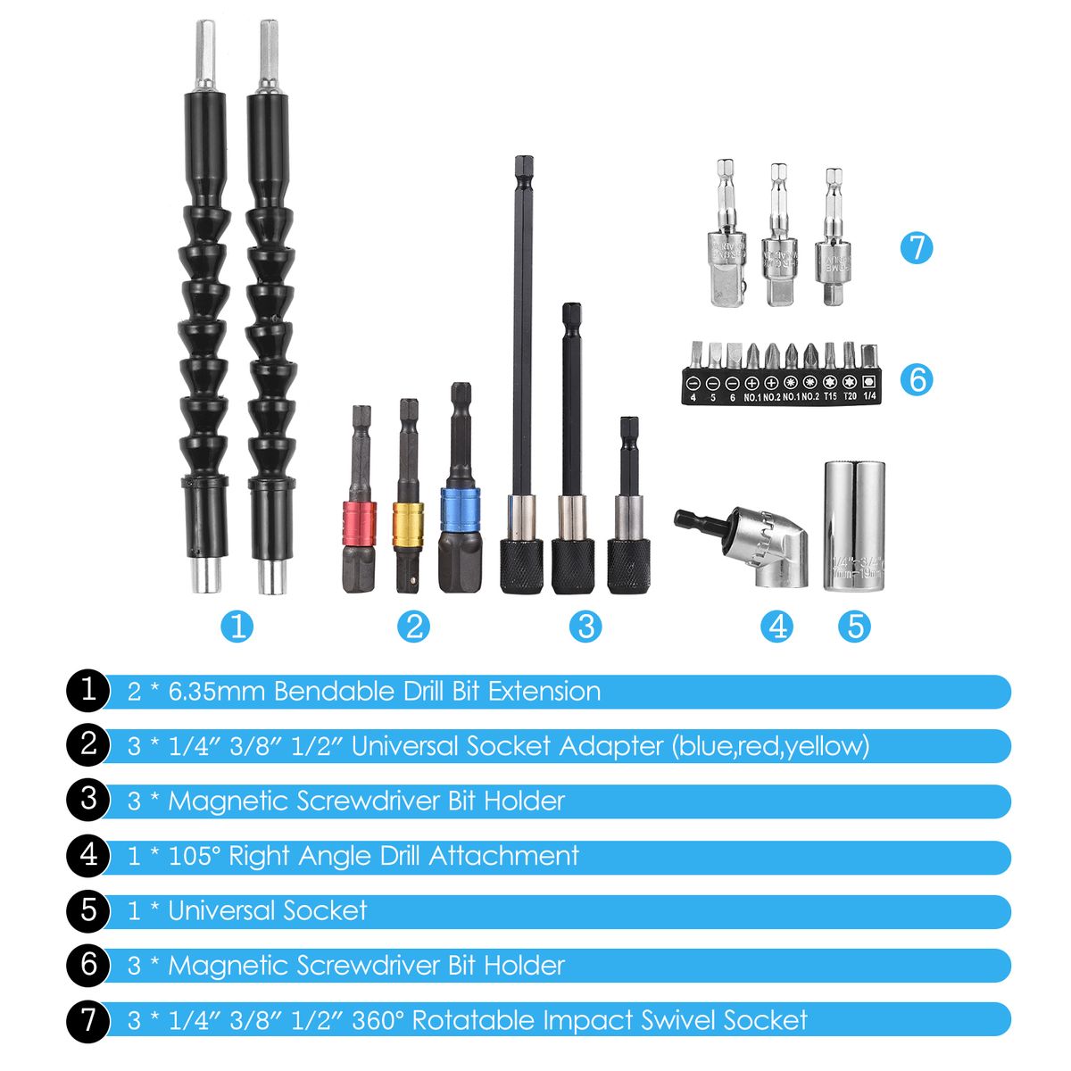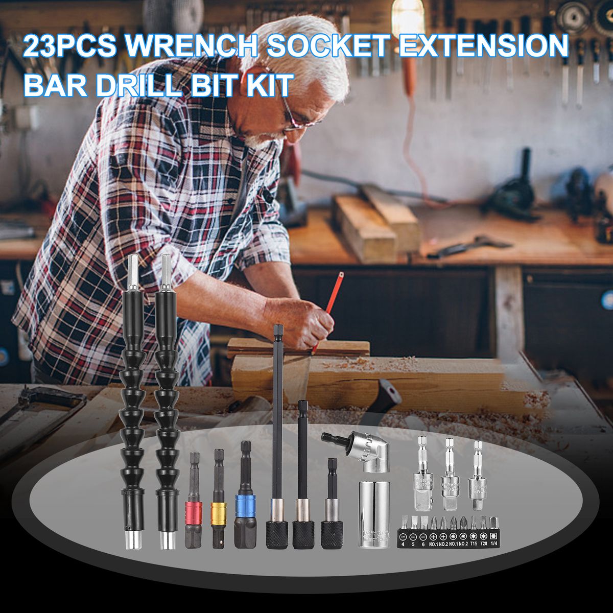 Set of 23pcs wrench amp; socket amp; drill bit kit, perfect to work with hand drill.