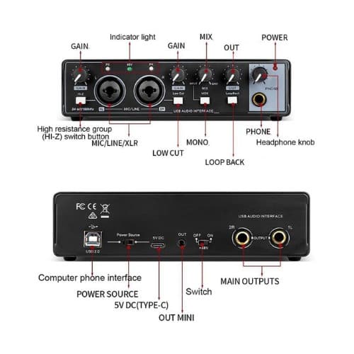 48V & ndash; phantom power switch for mic input - enables 48 V phantom power at the XLR socket.