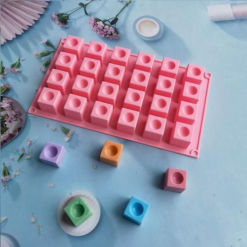 1X 24 Cavity Square Cube Silicone Candy Mold for Chocolate Mousse Ice Cream Jelly Pudding Dessert Bread Baking Pan Decorating Tool