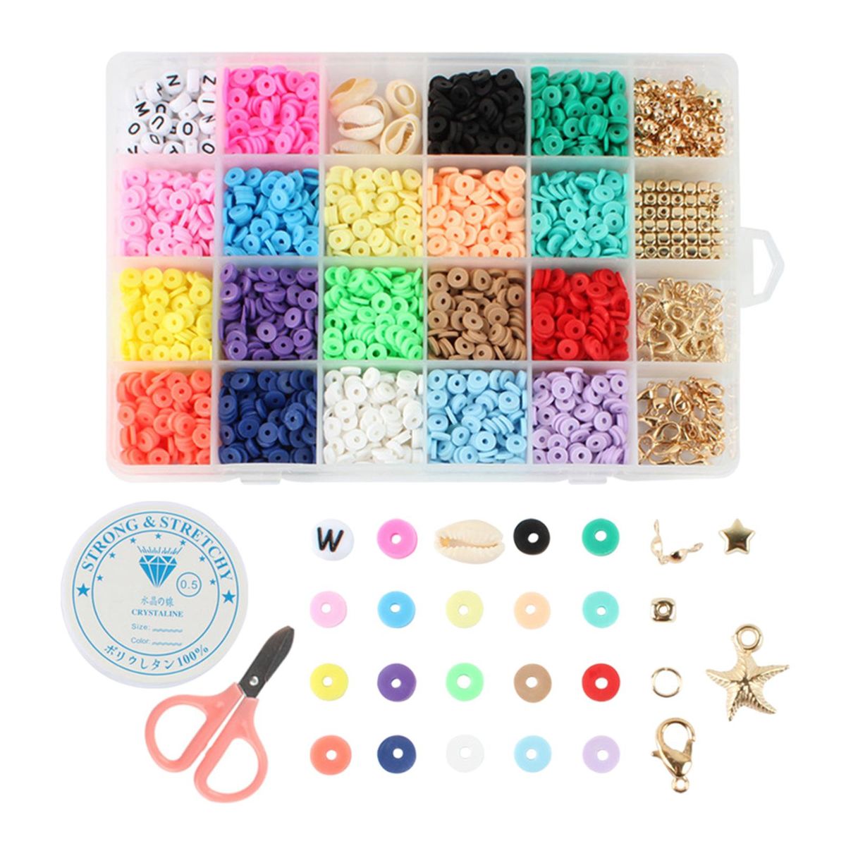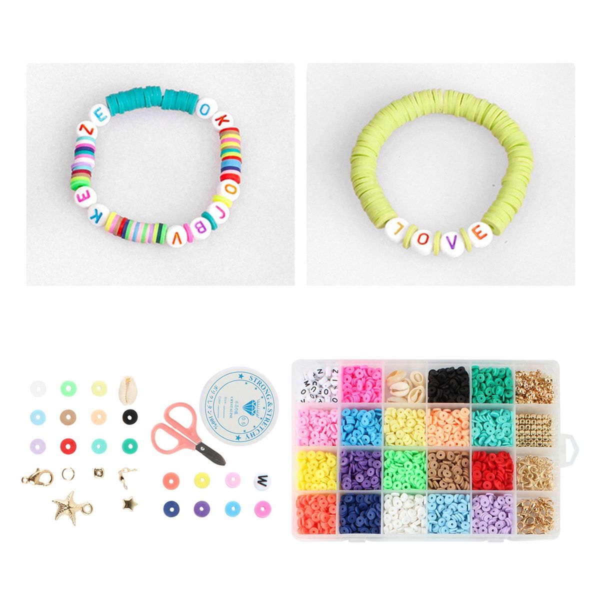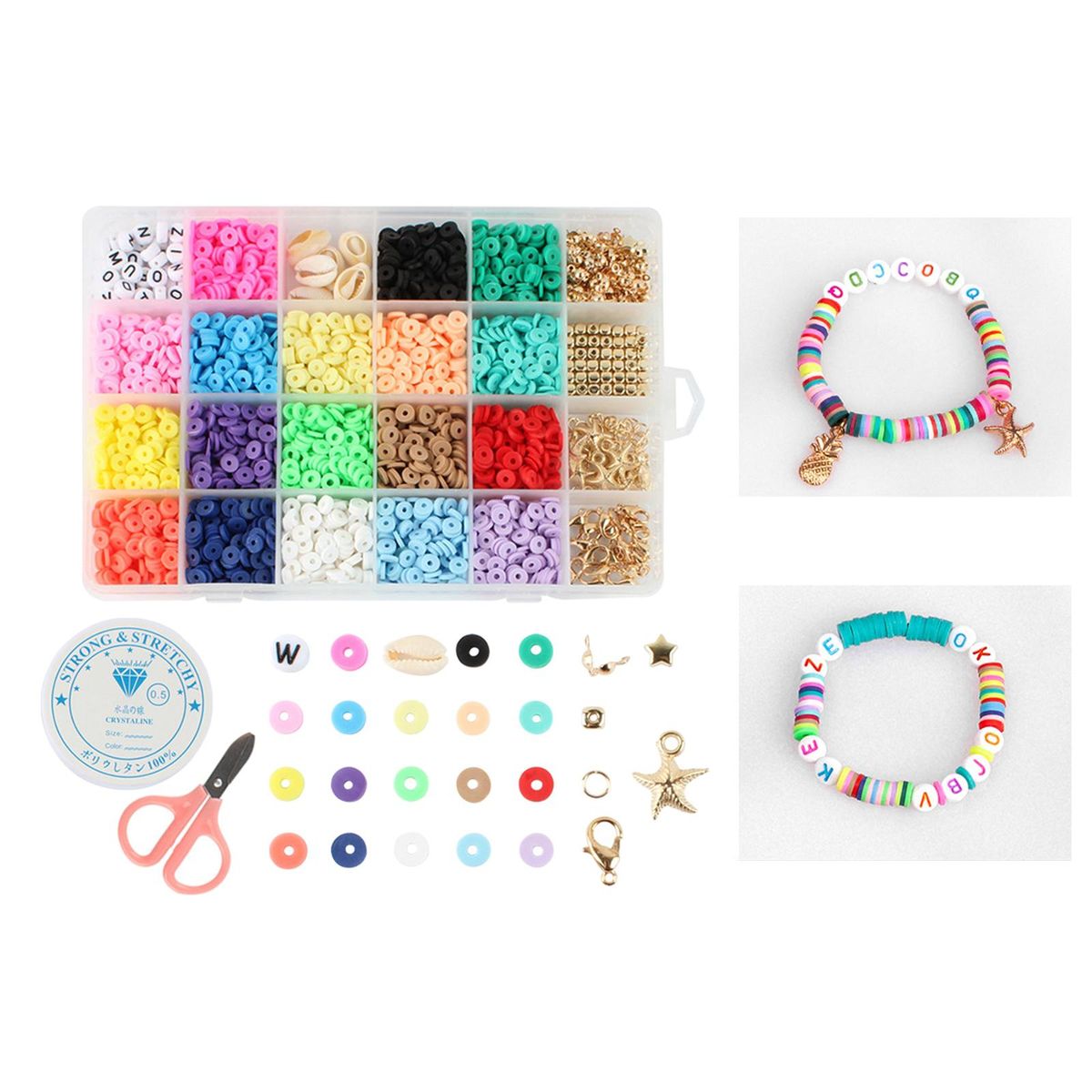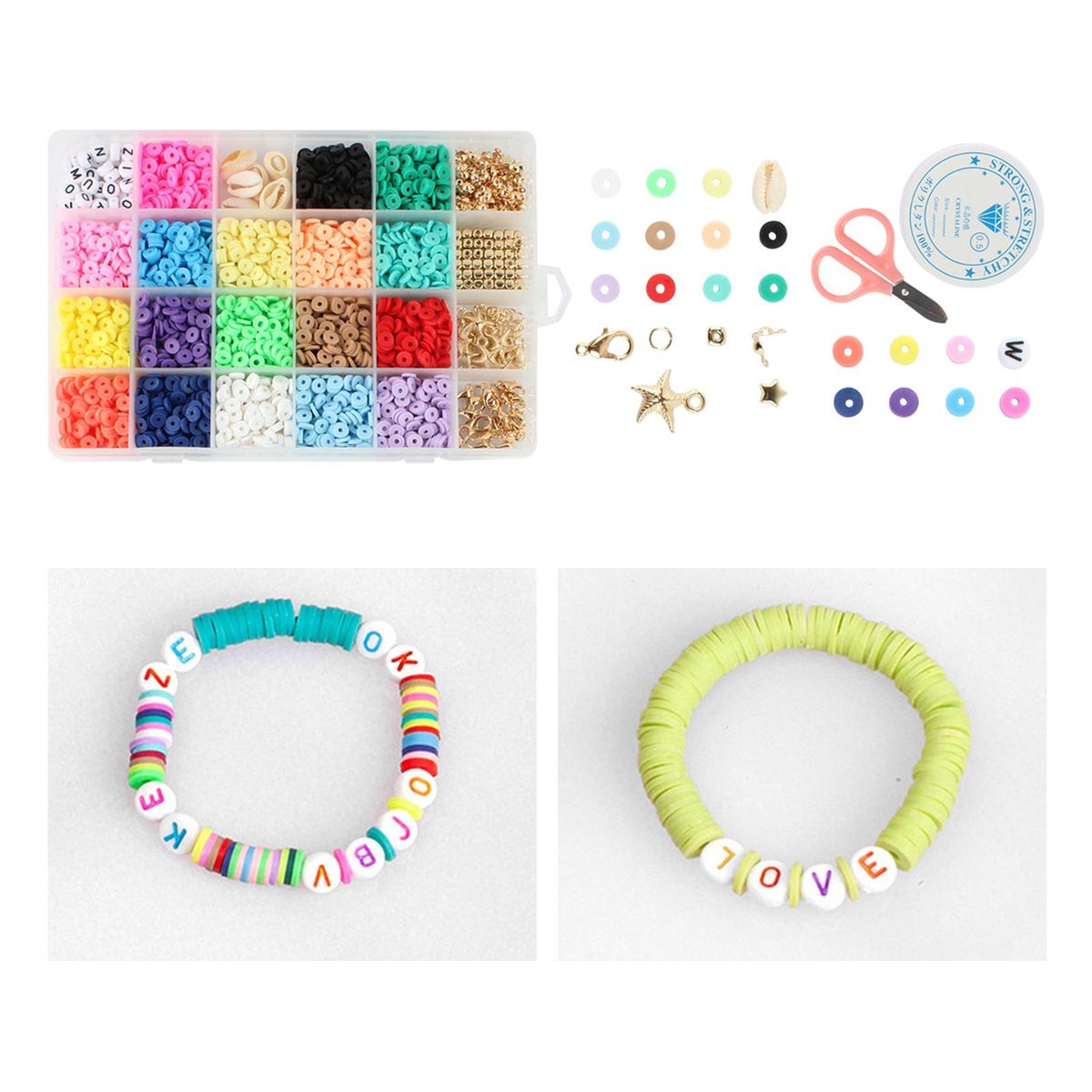 Polymer Clay Spacer Beads;Flat Round Polymer Clay Spacer Beads;Elastic Strings Jewelry Making Bracelets Necklace;Bracelets Necklace Earring DIY Craft Kit Finding;Jump Rings Loose Bead Pendants Charms Accessories;Letter Beads Jewelry Making Accessories Gifts