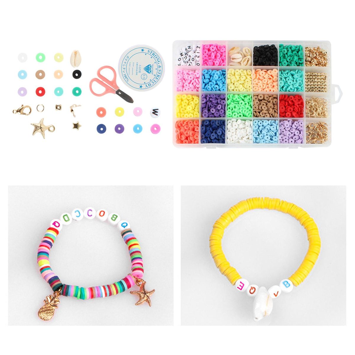 【Polymer Clay Spacer Beads】The round beads can be used as spacer beads, to make different letter bead bracelets, or you can use the elastic cord to weave a personalized letter bead bracelet.