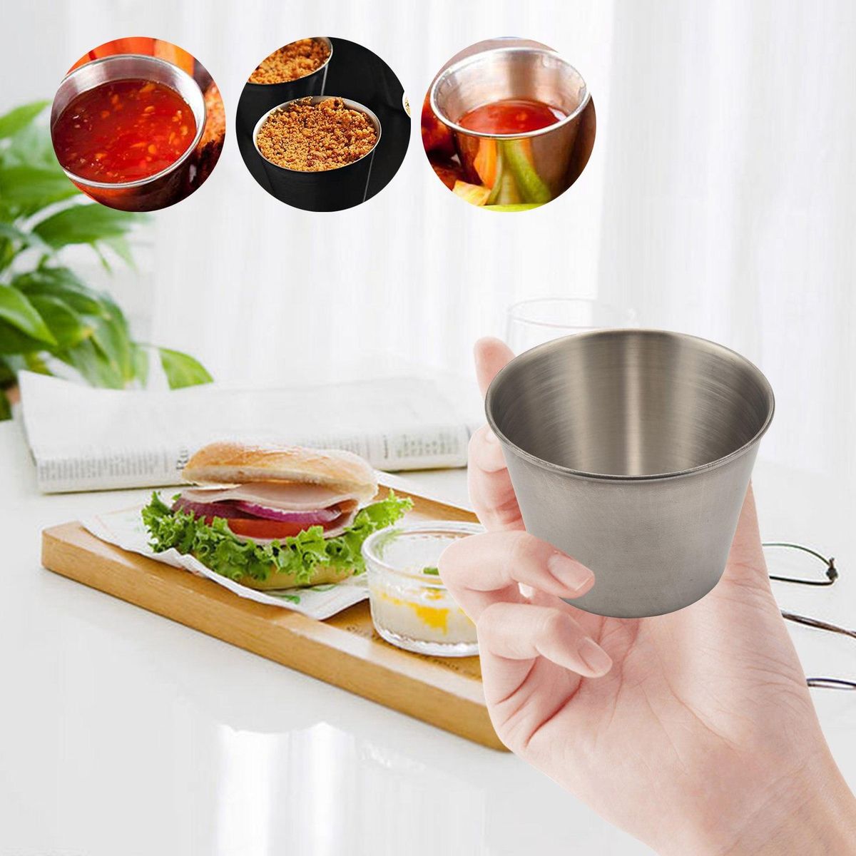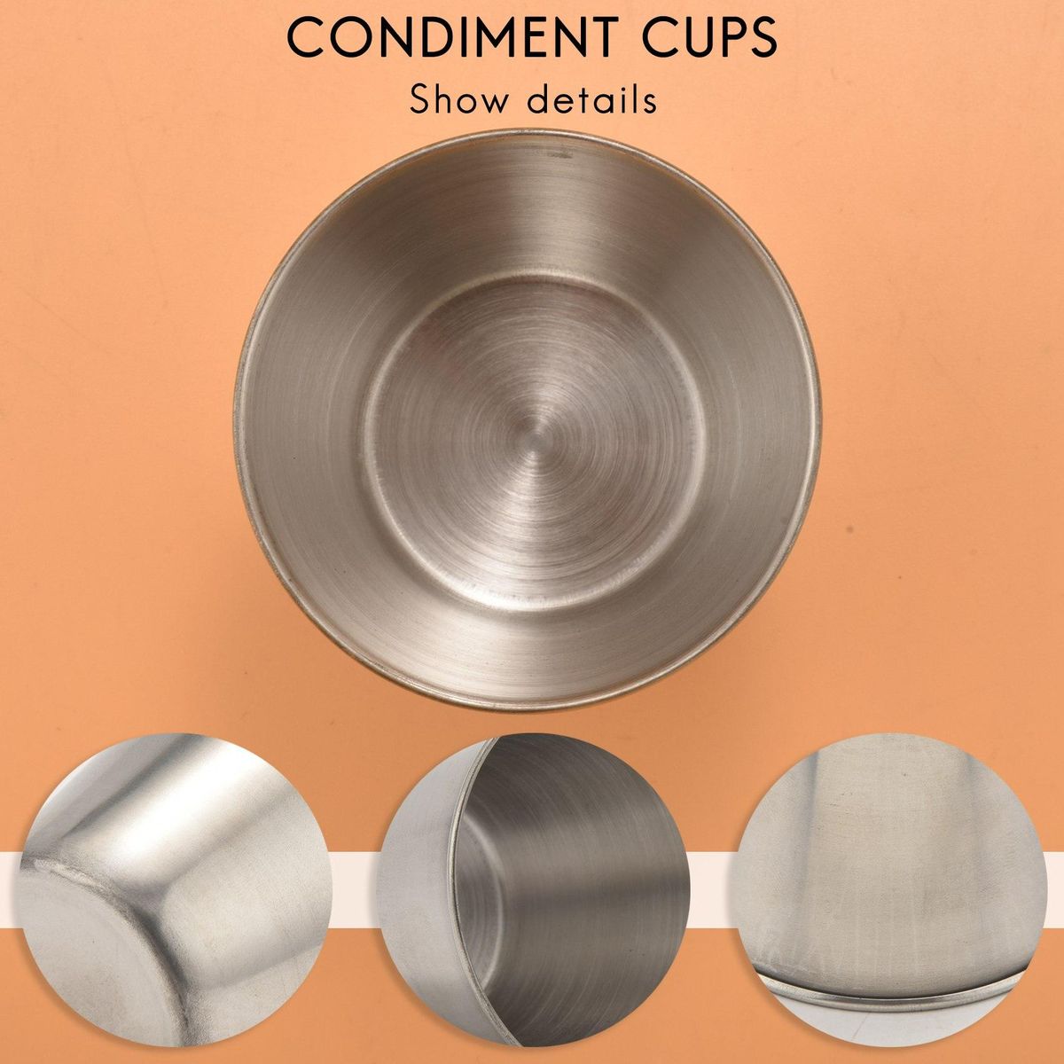 MULTIFUNCTIONAL STAINLESS STEEL PORTION CUP SET : All-purpose cups is perfect for hot and cold sauces e.g. , BBQ, ketchup, mustard, mayonnaise). They can also be used for vinegar, hot butter, fragrant water, ice cubes, lemon slices, nuts, berries and more - just use your .