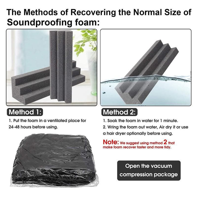 PROFESSIONAL ACOUSTIC CONTROL: studio sound foam are made of high density, fire retardant, non-toxic polyurethane foam which is used to eliminat reverb and echoes of bass sounds. To minimize interference and sound , sound proofing foam panels would be the best for professional acoustic control, acoustic treatment, noise reduction and sound dampening.